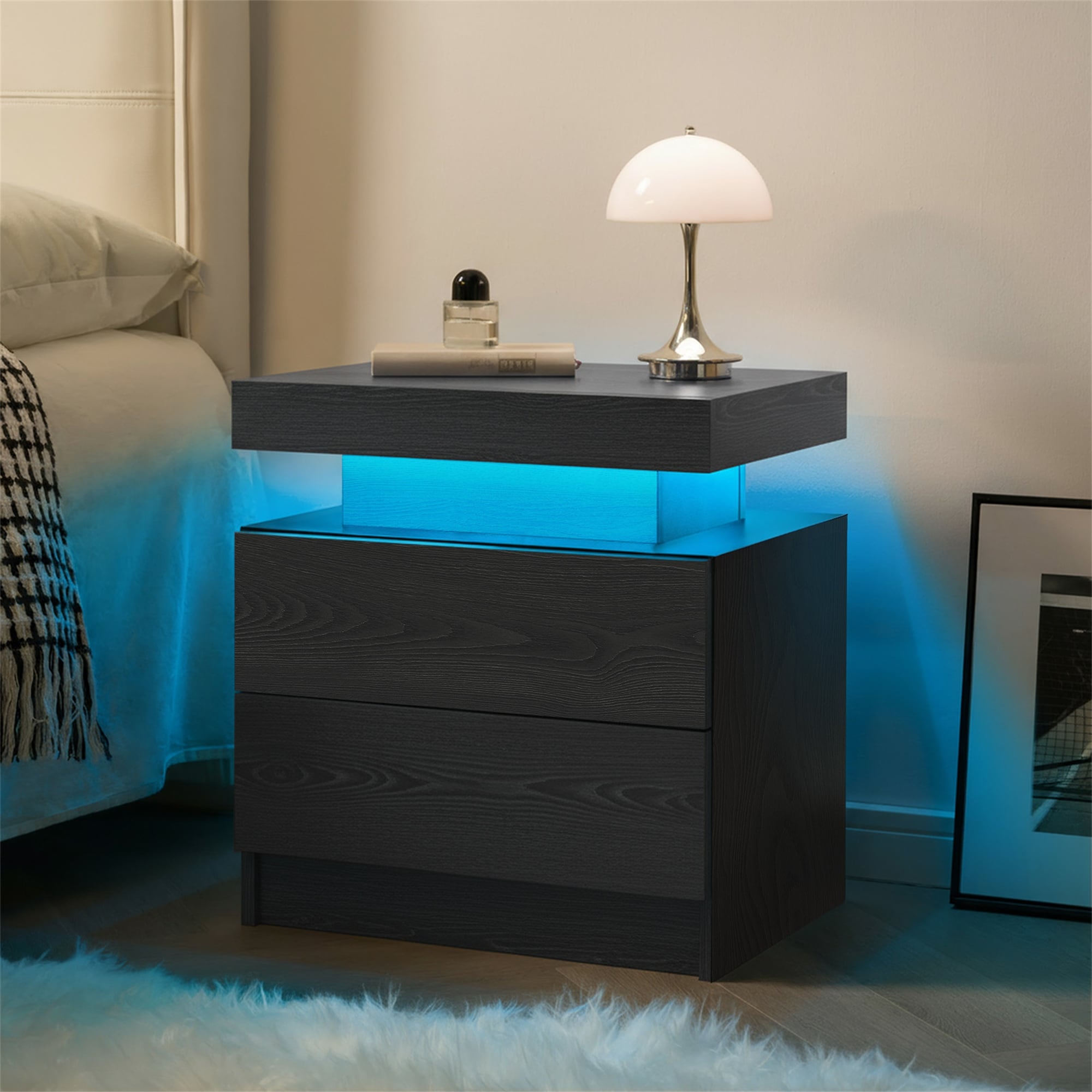 Modern 2-Drawer LED Nightstand with Built-in Lights