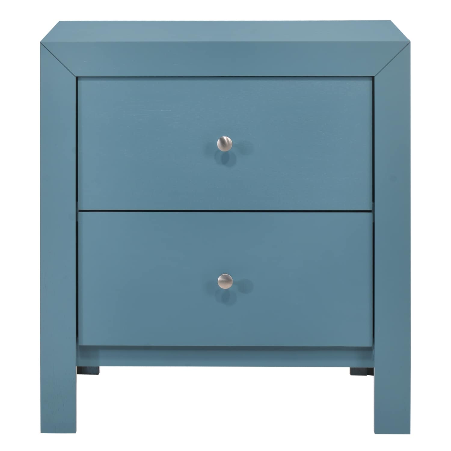 2 Drawer Teal Nightstand, 25 Inch Classic Wood Bedside Table with Dovetail Drawers and Refined Style