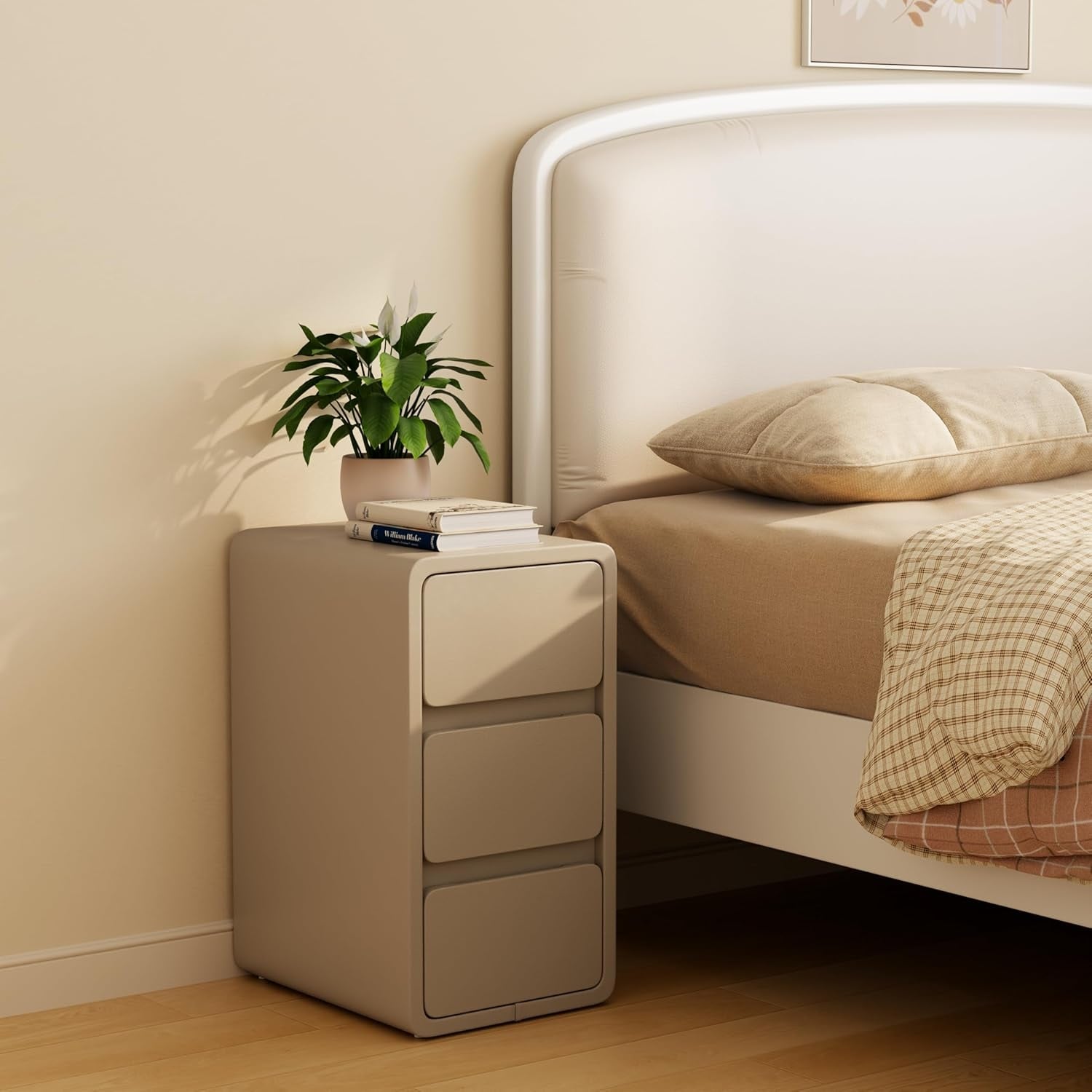 Compact Nightstand with Leather Surface and Drawers for Small Spaces