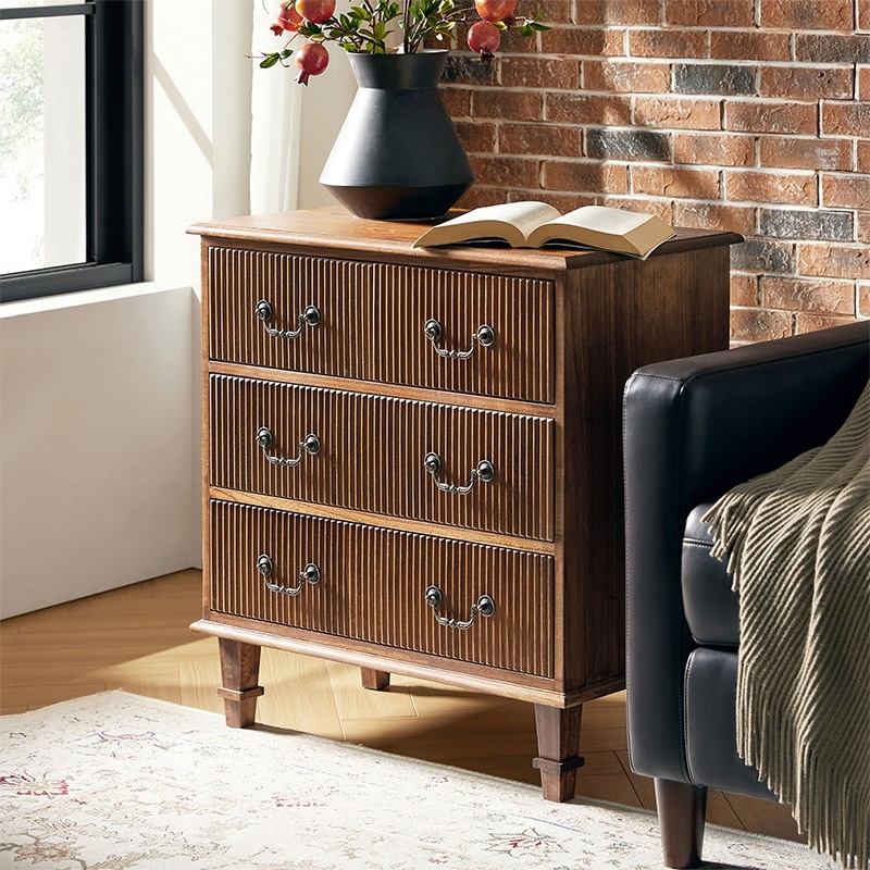 Pallantium Transitional 30"Tall Fluted 4-Drawer End Table with Charge Station by HULALA HOME