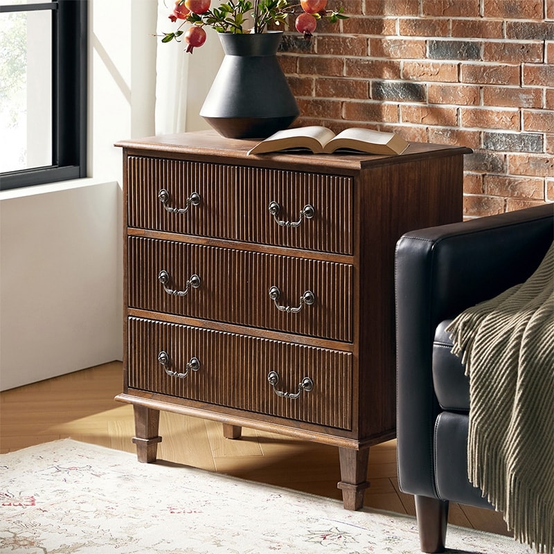 GDFStudio Mid-Century Fluted 3-Drawer Wooden Nightstand with Metal Handles