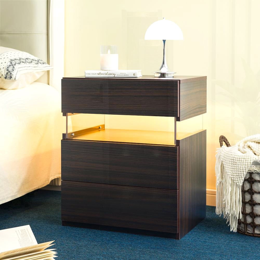 LED 3-Drawer Nightstand with Acrylic Board for Bedroom and Living Room