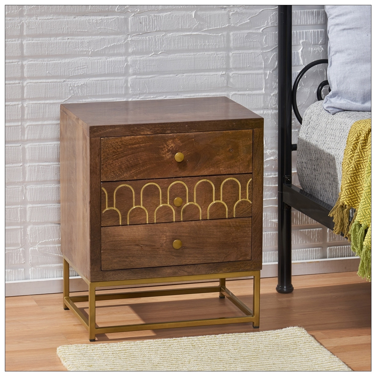 Metal Legs Nightstand With Drawers