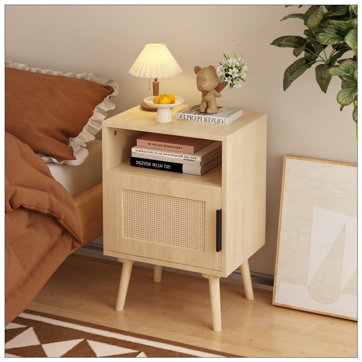 Rattan Door Nightstand with Open Shelf