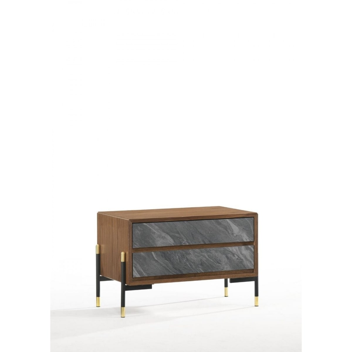 Walnut Nightstand with 2 Soft-Close Drawers and Slate Look Fronts