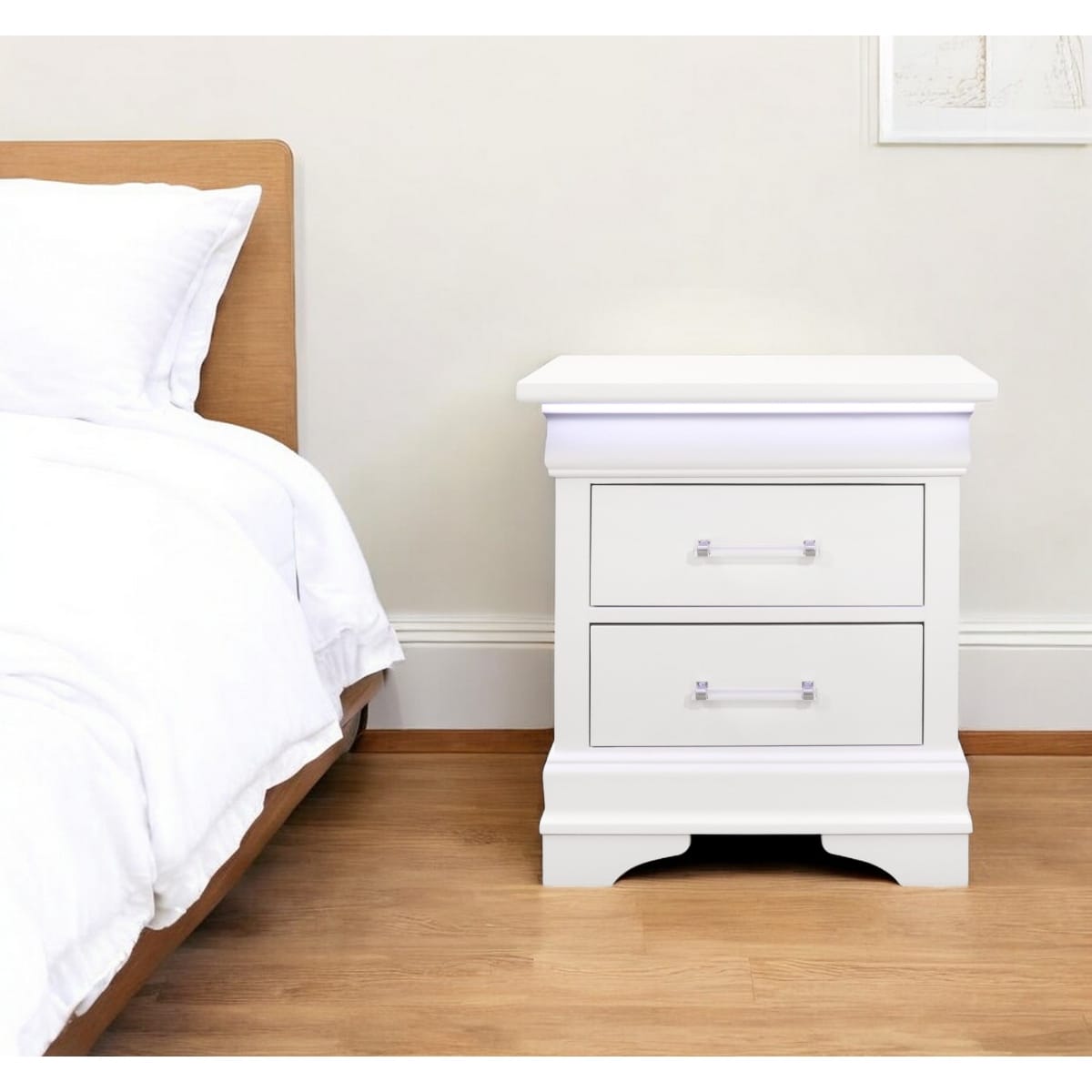 Modern Fluted Nightstand with Charging Station, 18 Inch, White