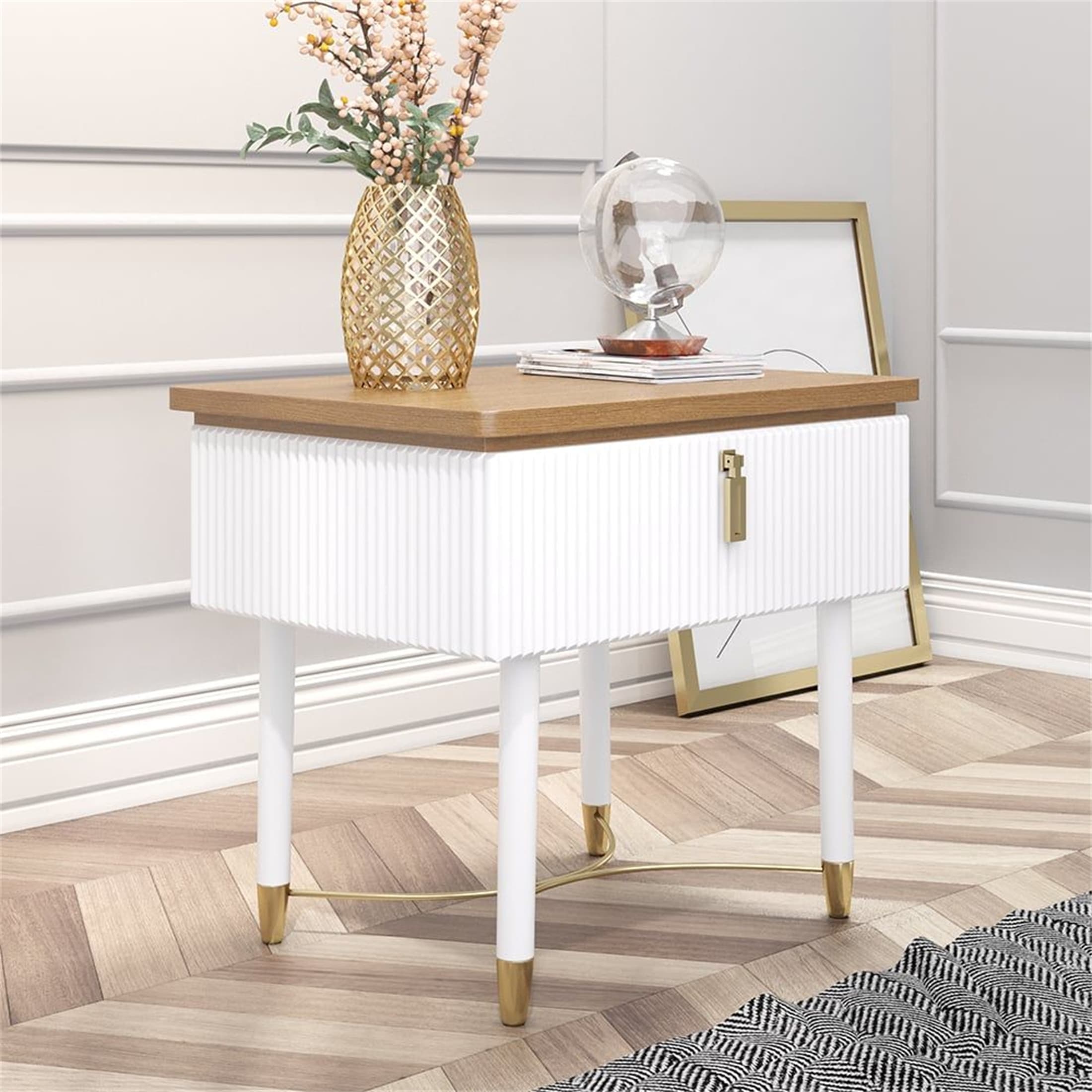 Modern White Nightstand Contemporary Wood Nightstand Bedside Table with Drawer