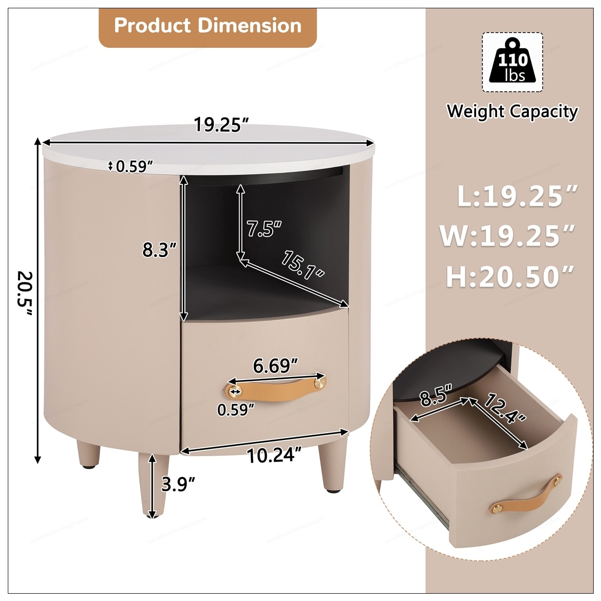 Elegant Beige Upholstered Nightstand with 3 Drawers for Modern Bedrooms