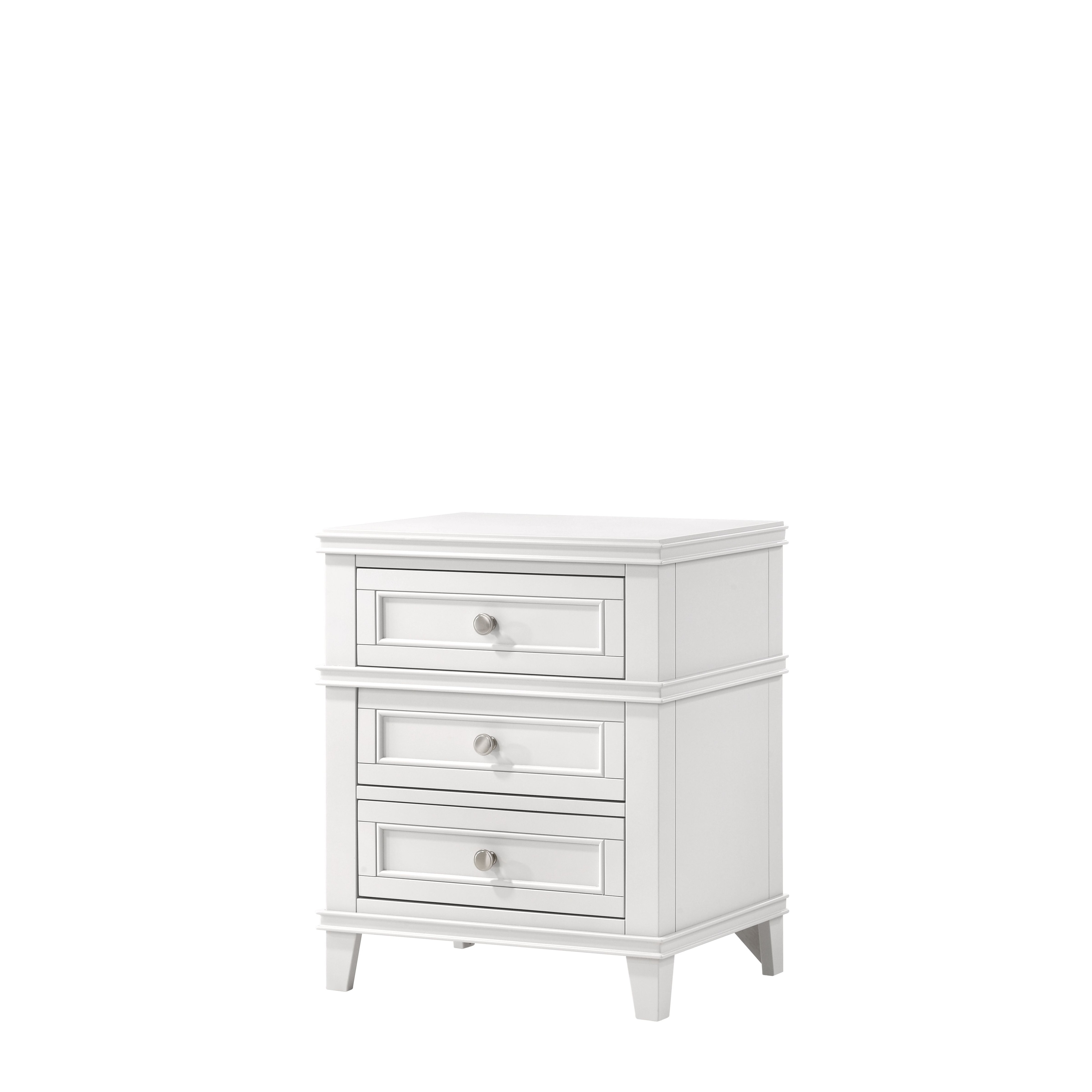 Naples Nightstand in Off White with Durable Hardwood Construction and Brushed Nickel Hardware