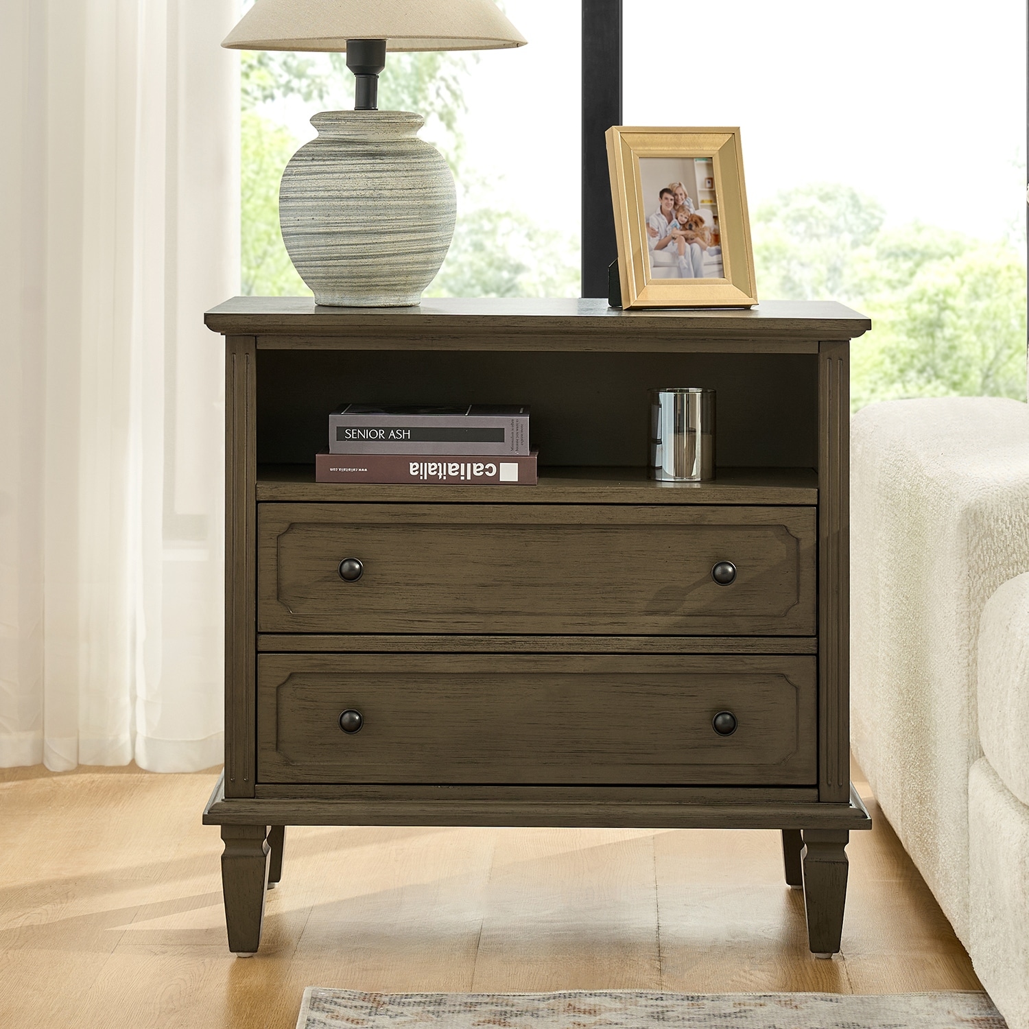 Kamilo Traditional 28.25 inch Wide End Table Open Storage with Built-in Charging Station and 2 Drawers by HULALA HOME