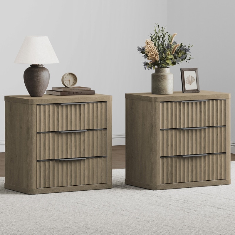 Versatile Retro Nightstand 3 Drawers Wavy Design