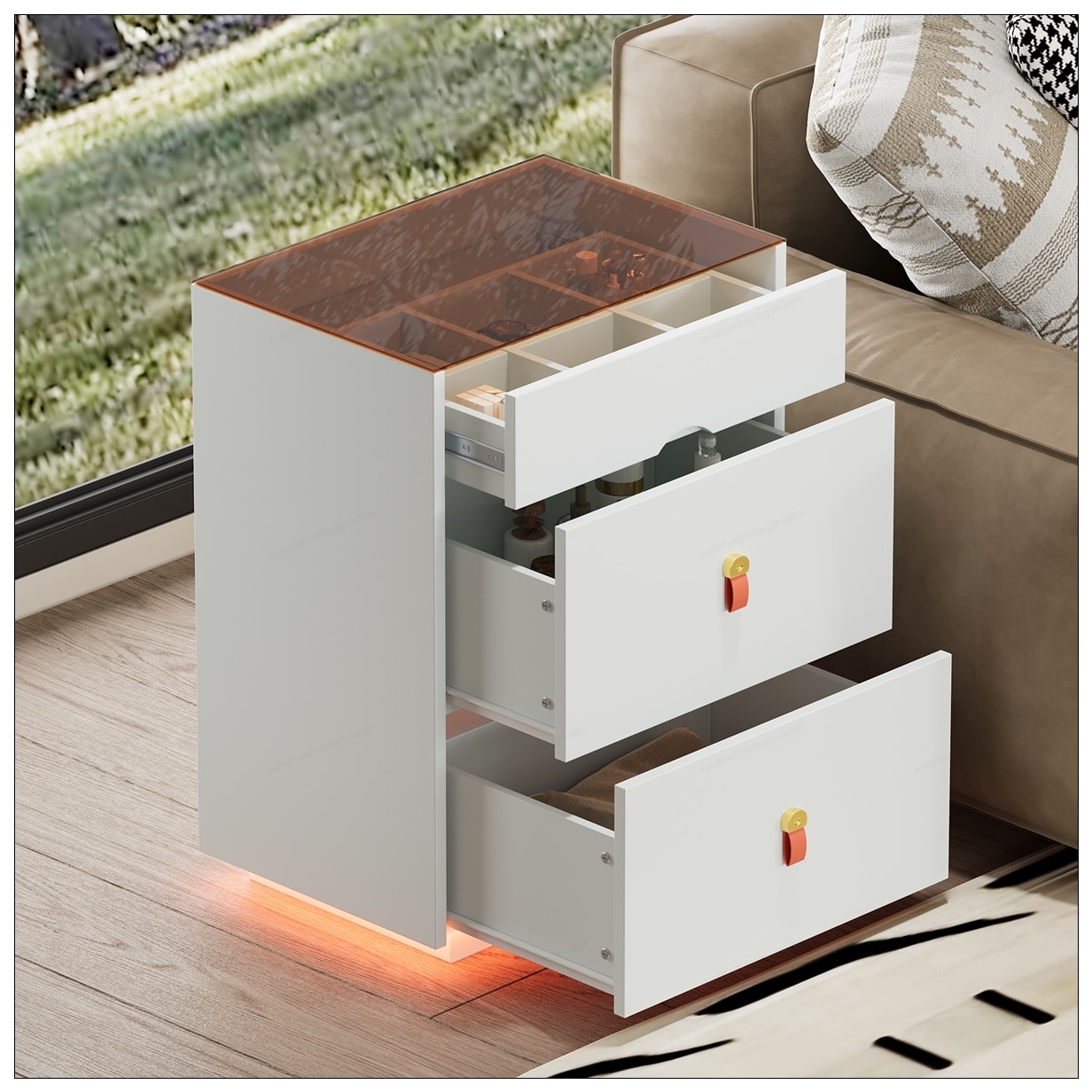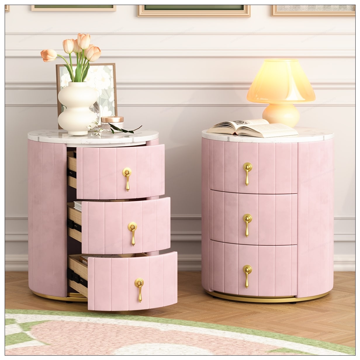1pc Glam 3-Drawer Nightstand Velvet Tufted Drawer Front Jewelry Tray Faux Crystal Drawer Knobs