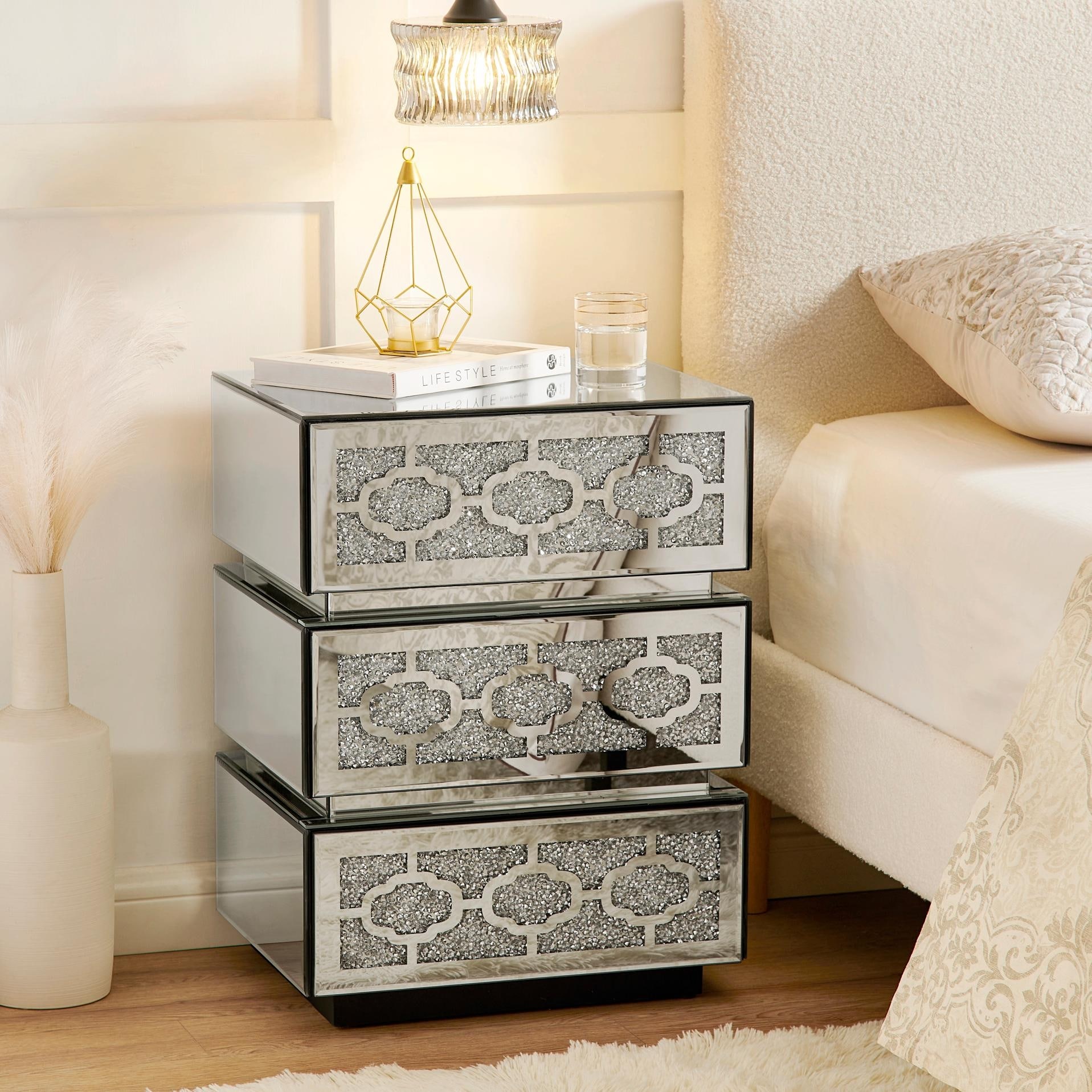 Modern Mirrored Nightstand - 17.7" Wide, 3 Drawers