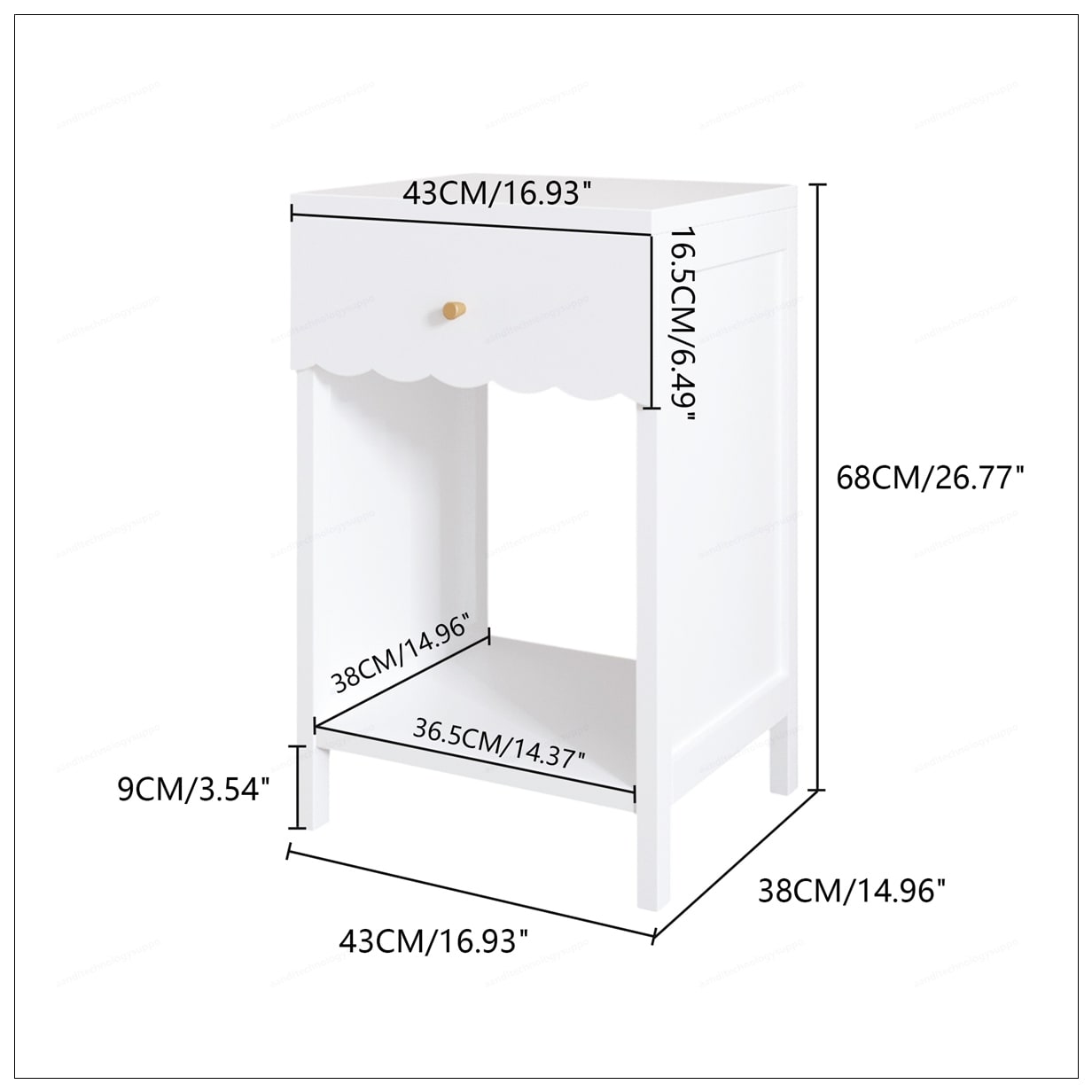 Nightstand Olienza, Two Drawers, One Shelf, White Finish,High quality and durable