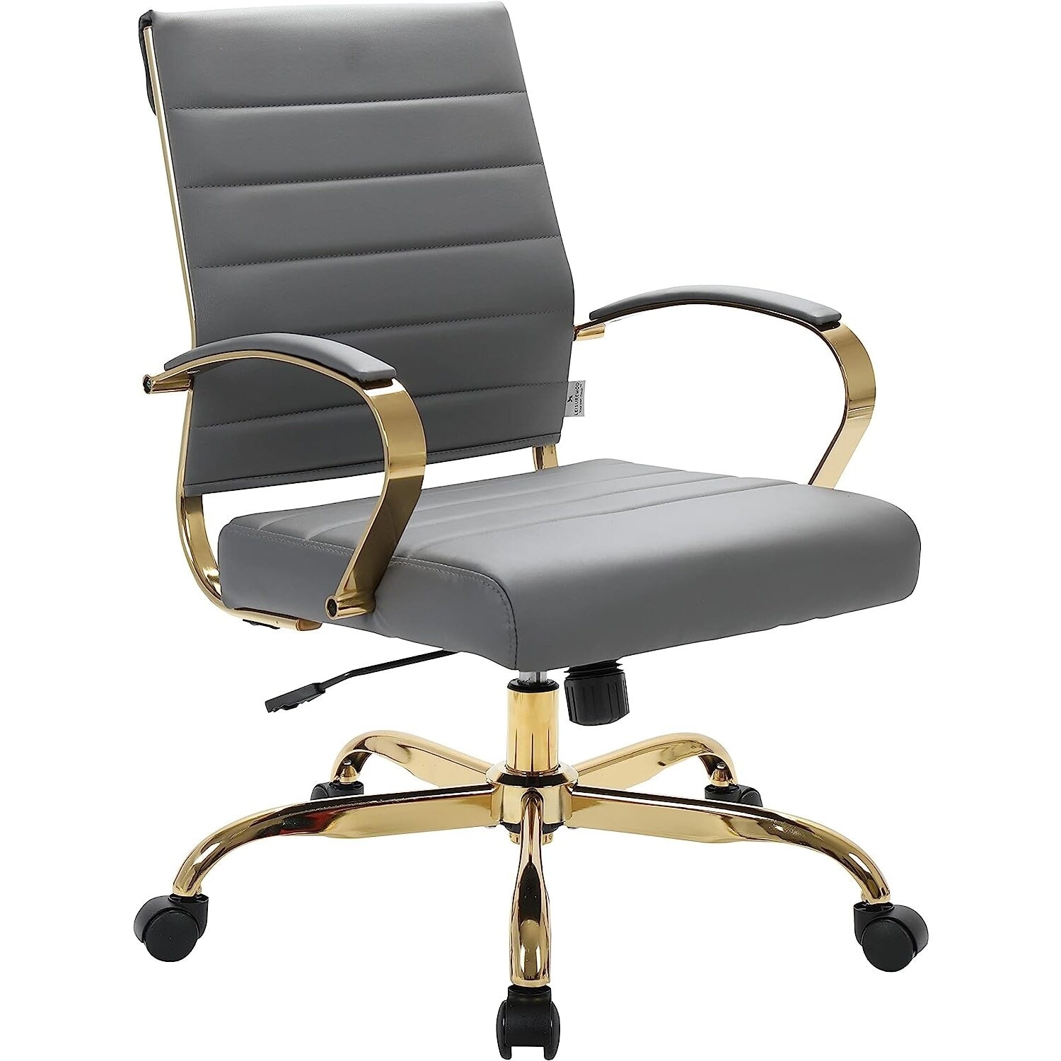 Leather Office Chair Gold Frame - Mid-Century Modern Desk Chair, Adjustable Height Swivel Task Chair