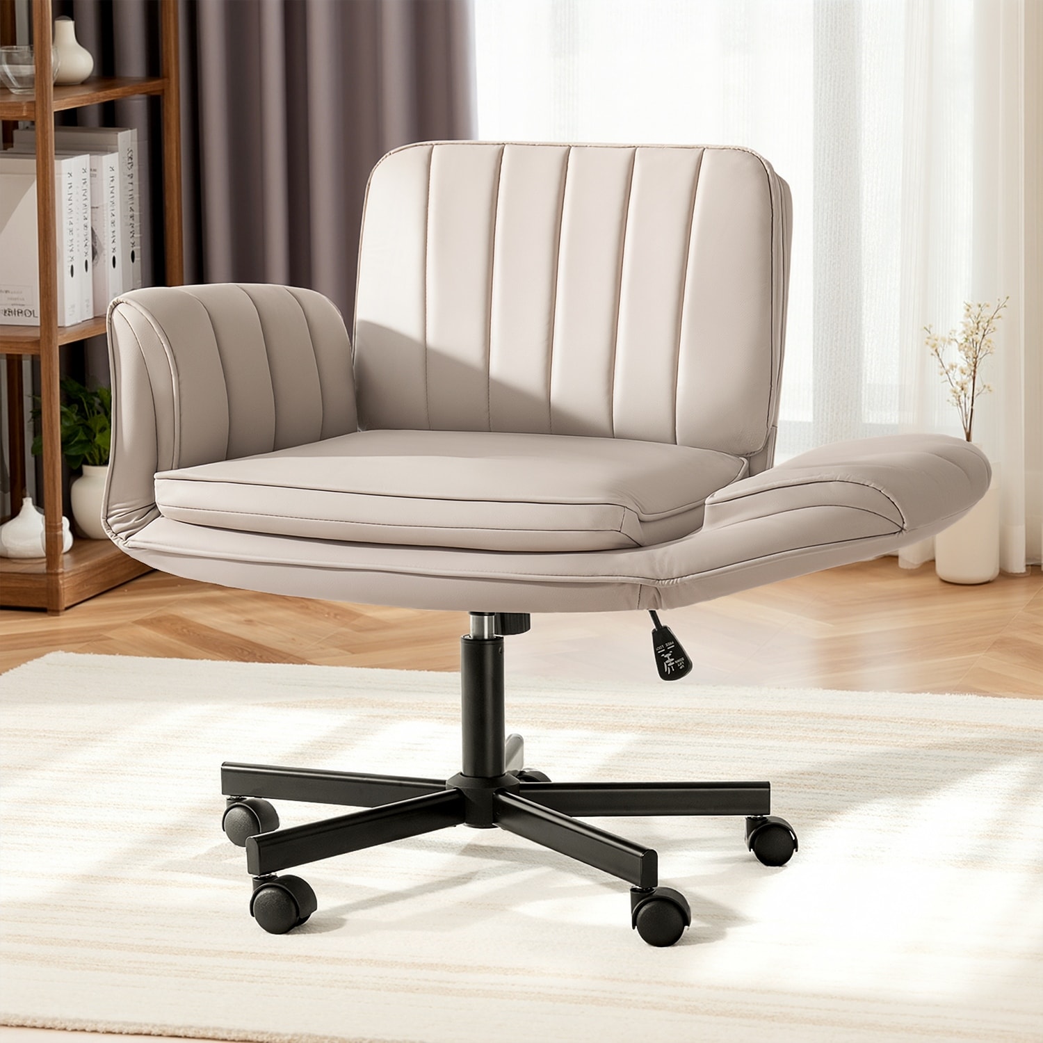 BOSSIN Criss Cross Office Chair with Arms and Wheels - Adjustable Swivel PU Leather Desk Chair for Makeup Vanity, Bedroom