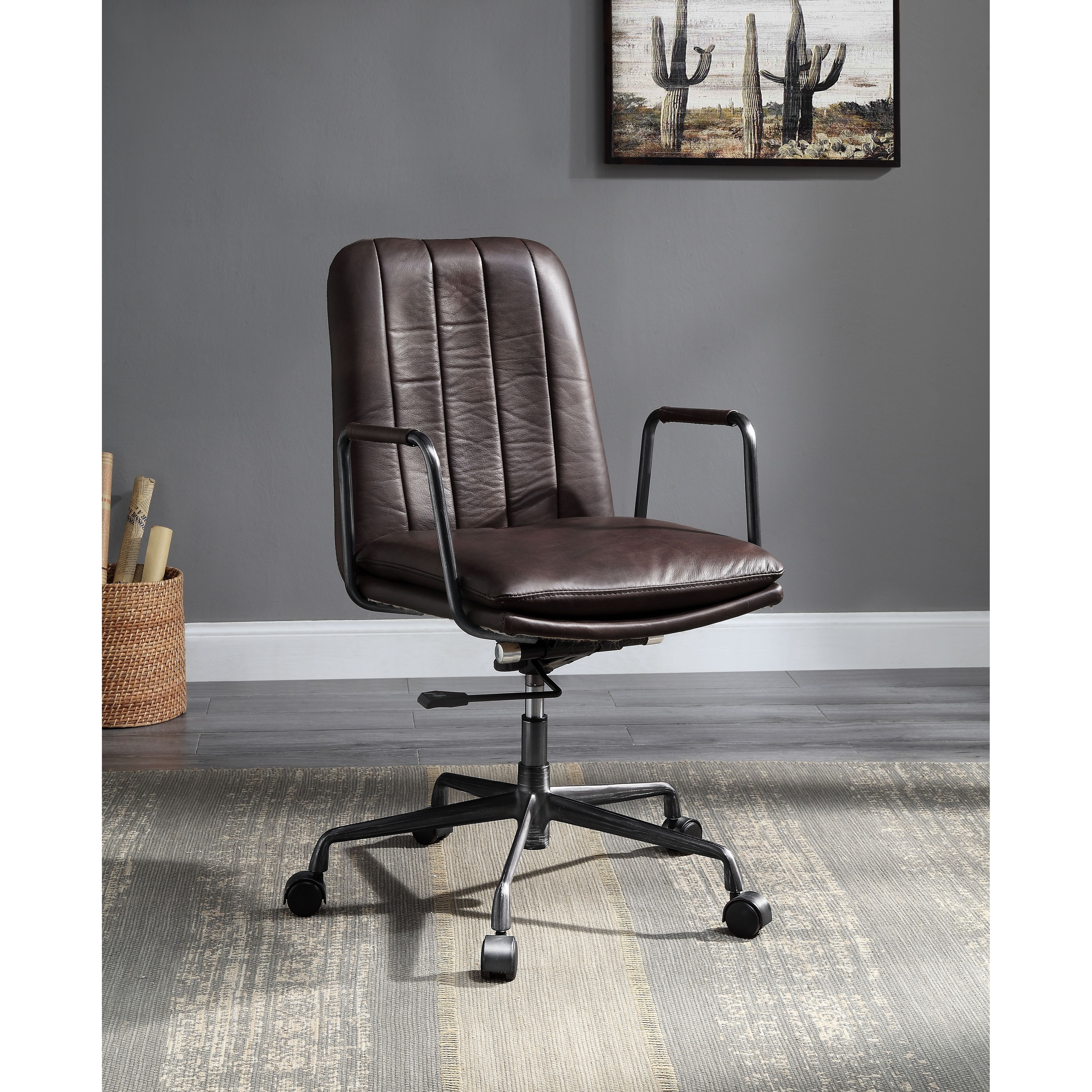 Dark Brown Top Grain Leather Office Chair, 360° Swivel, Adjustable Height, 220LBS Capacity, Upholstered Cushions