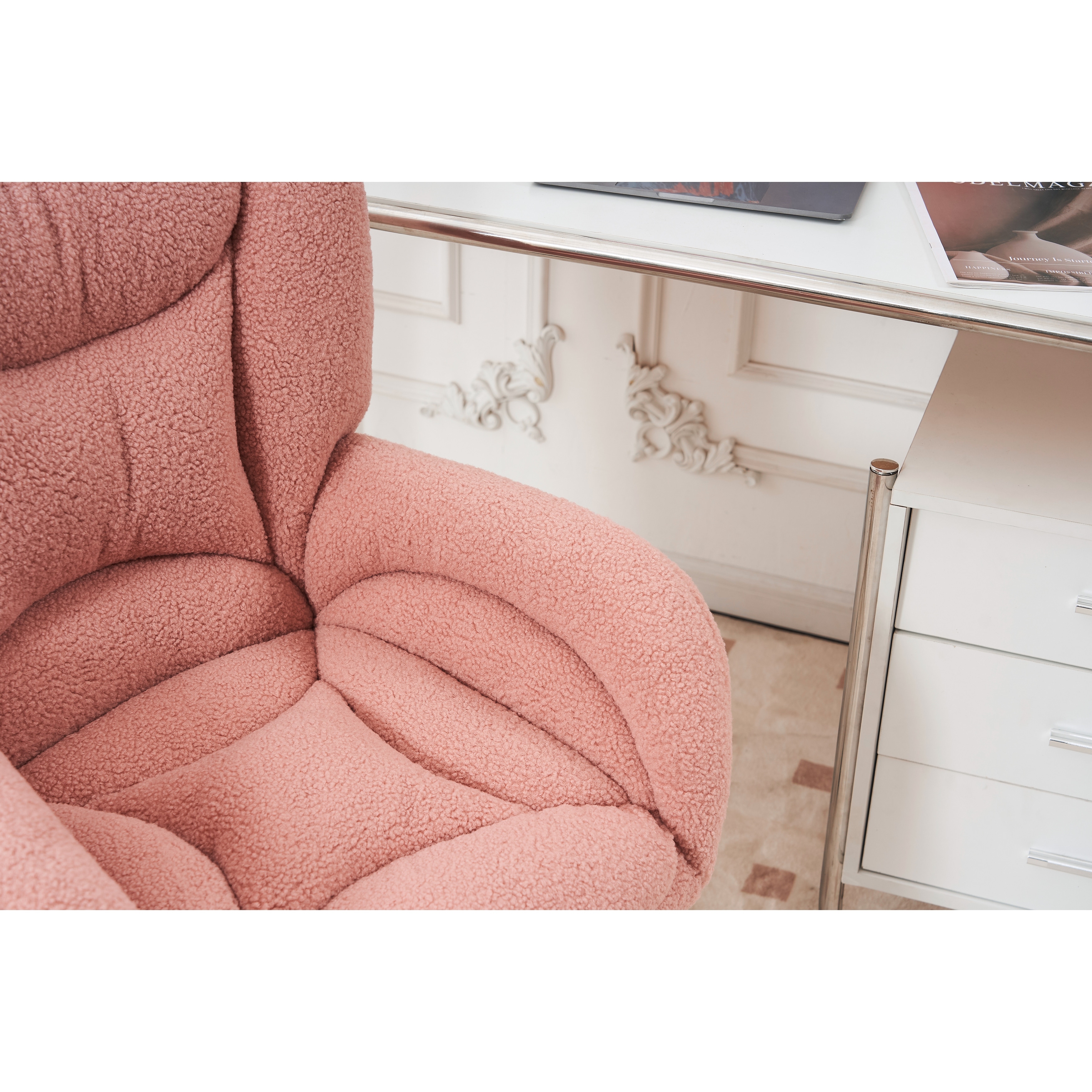 Teddy Fabric Armless Desk Chair with Wheels and Adjustable Height