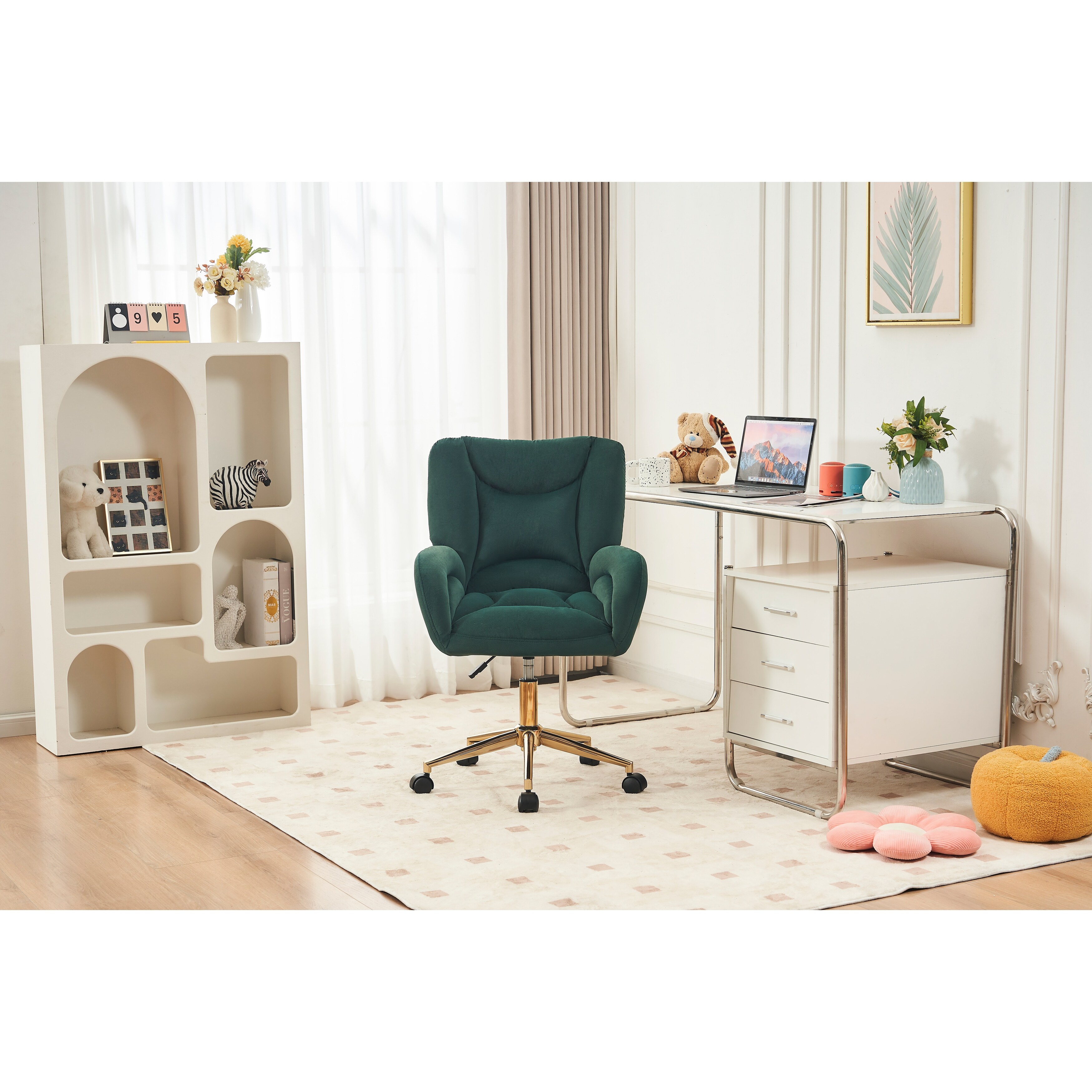 Yaheetech Upholstered Swivel Office Chair with Tufted Shell-Shaped Back for Bedroom Salon