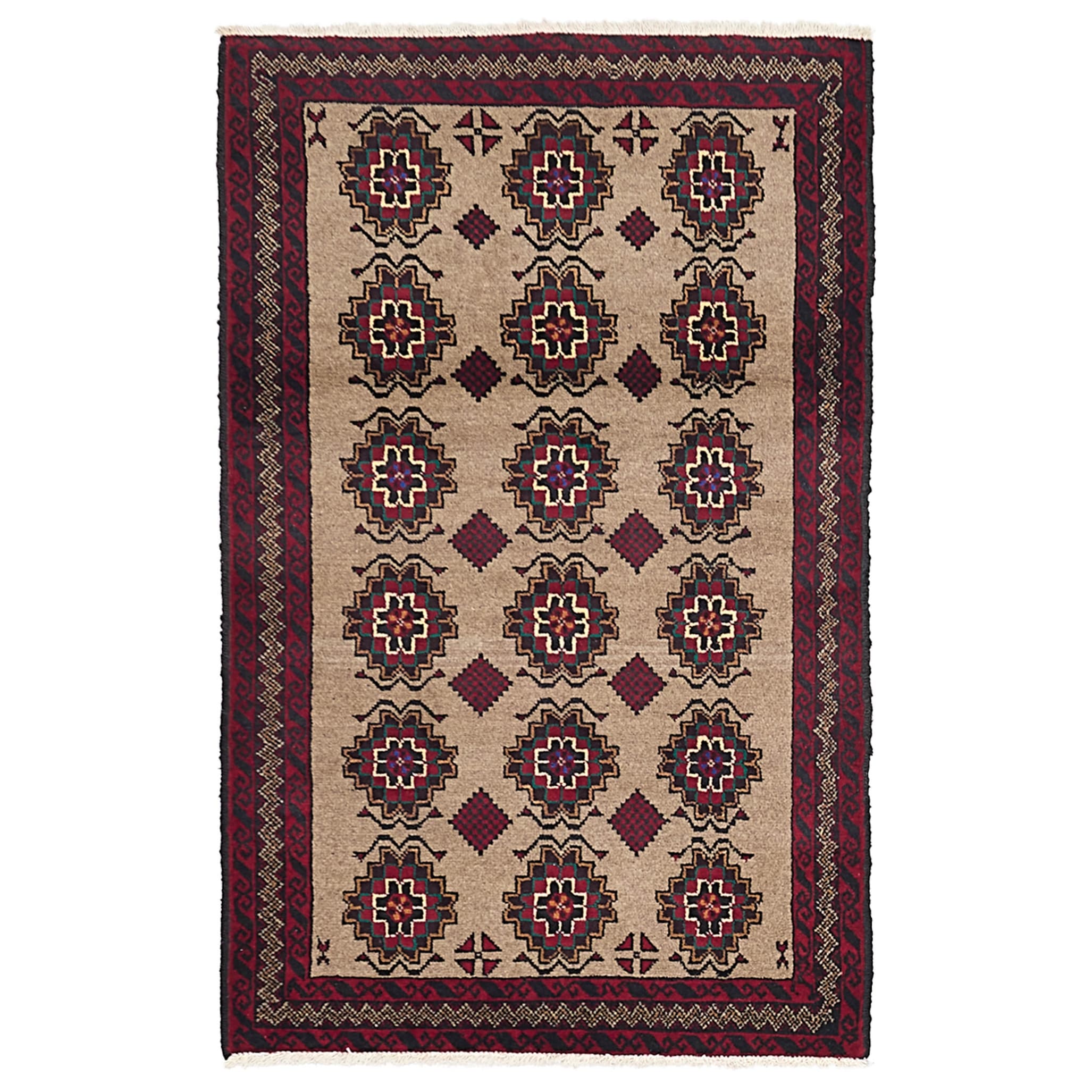 ECARPETGALLERY Hand-knotted Baluch Cream, Red Wool Rug - 3'3 x 5'11