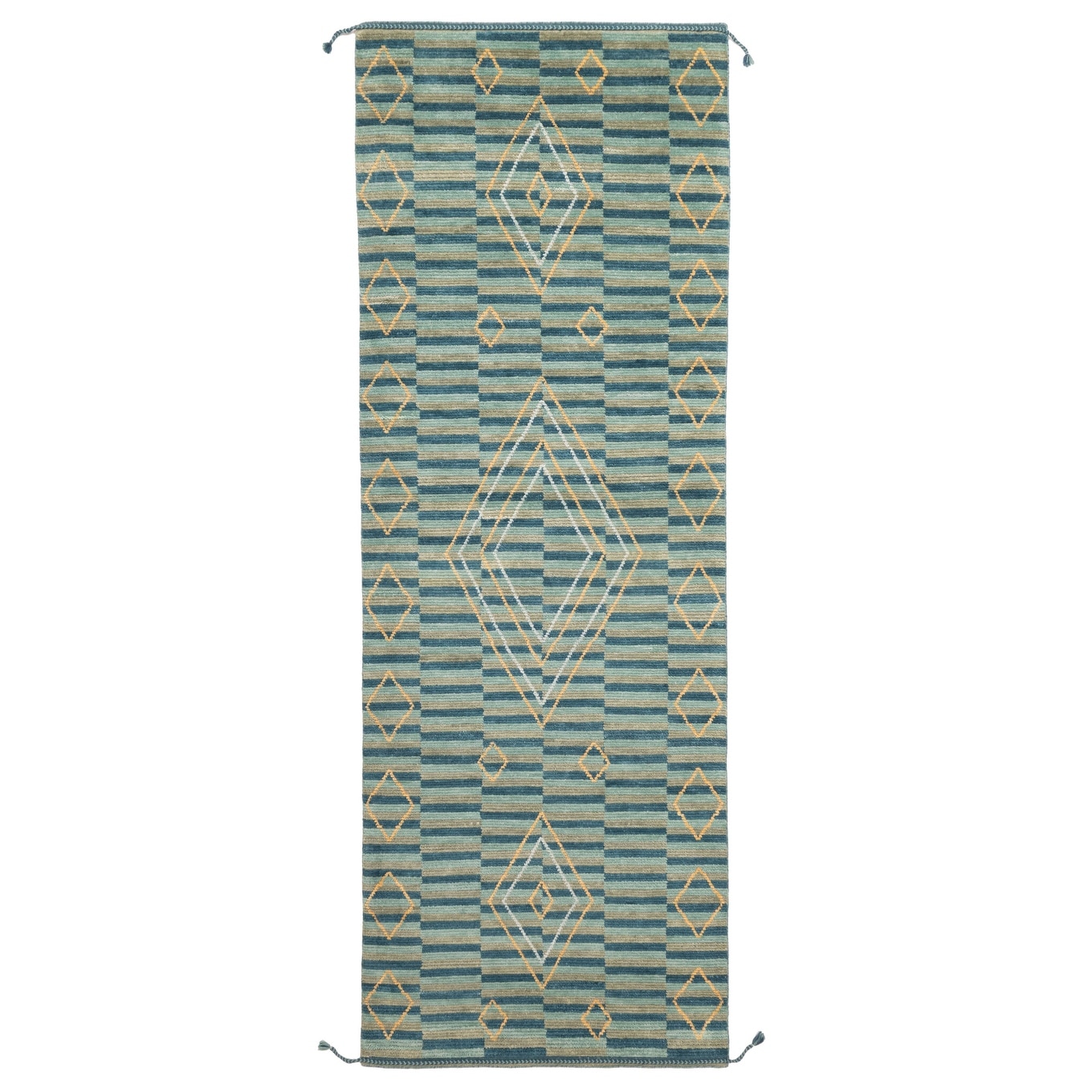 Southwestern Kazak Riley Gray/Light Blue Wool Runner - 2'7'' x 9'9''