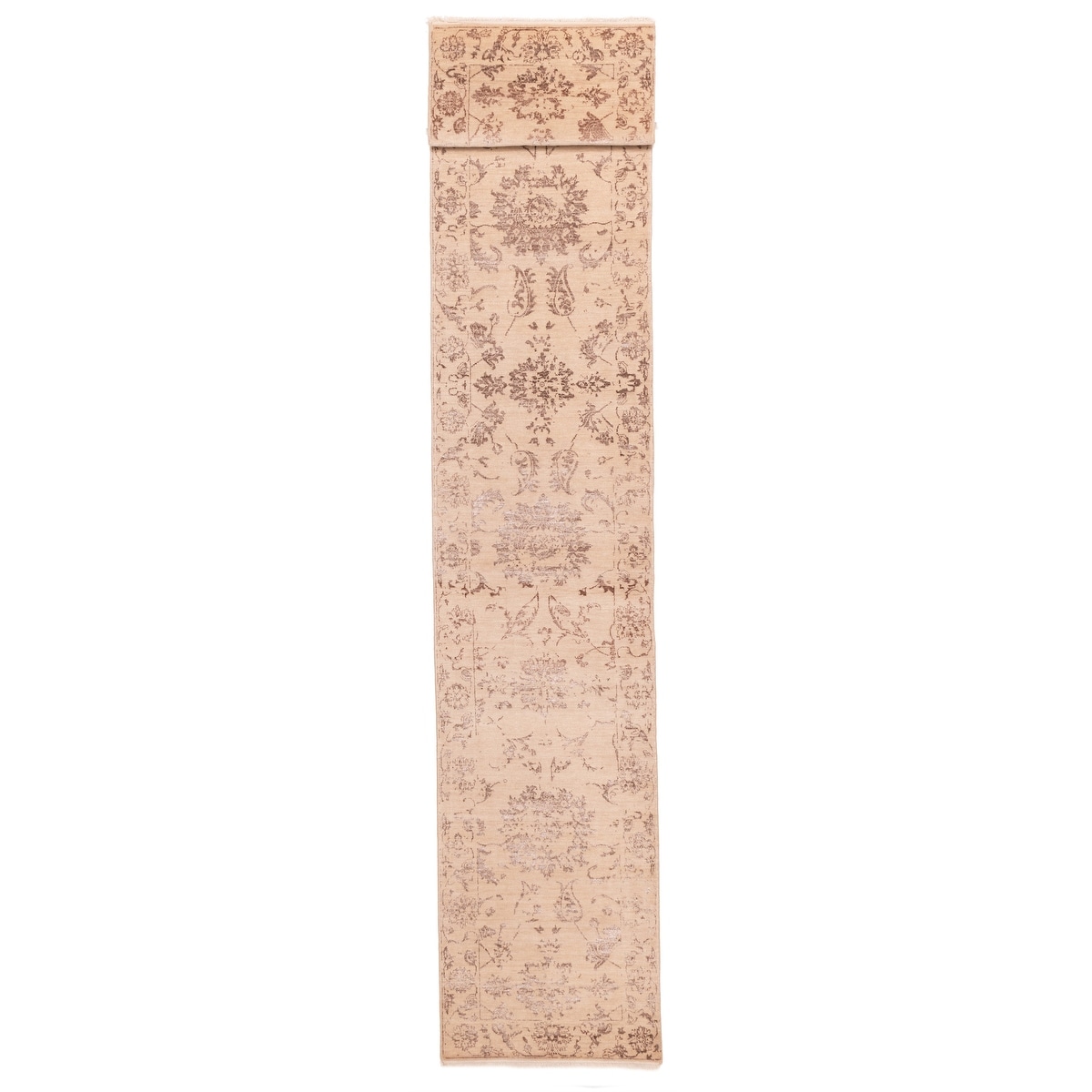 ECARPETGALLERY Hand-knotted Heritage Tan Silk, Wool Rug - 2'6 x 16'2