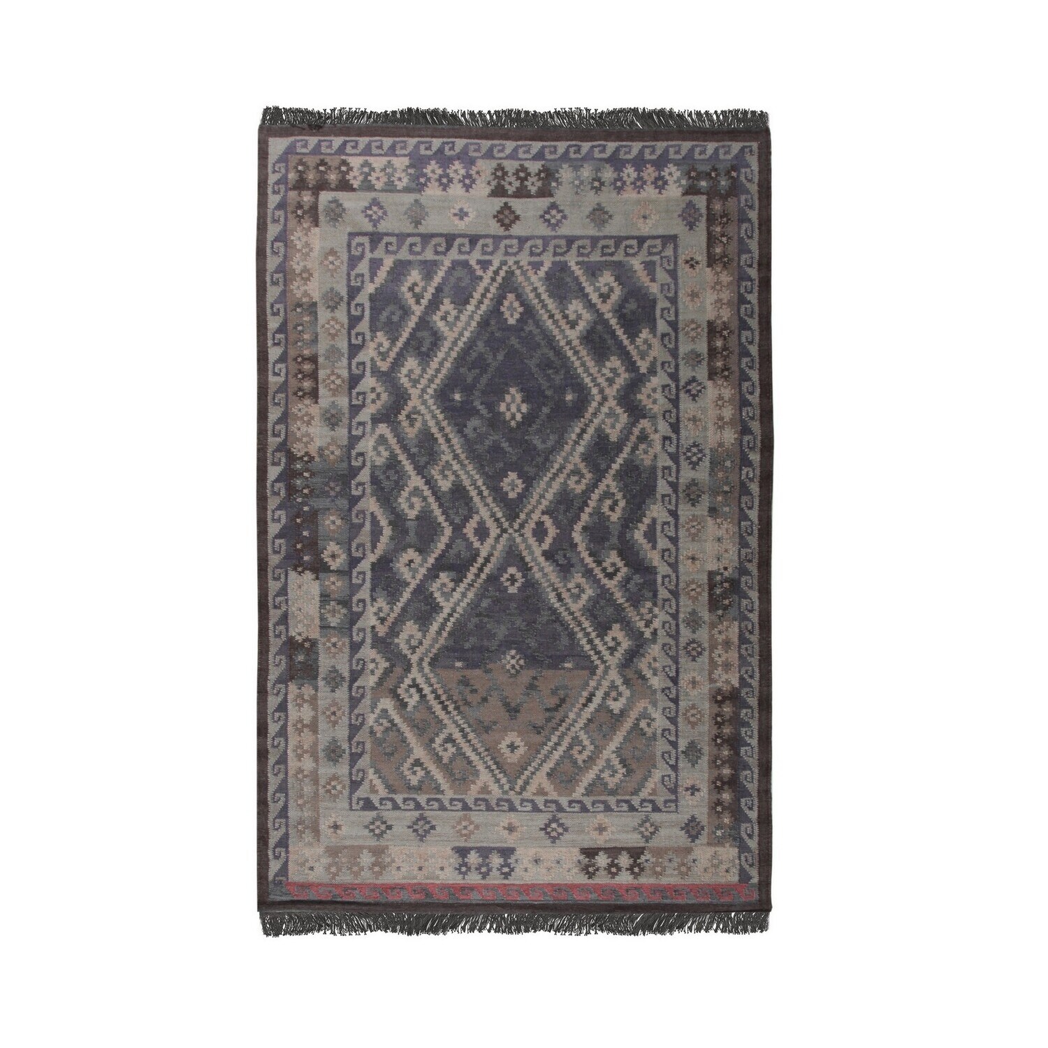 Gray Hand-Woven Wool Contemporary Natural Wool Flat Area Rug, Luxurious Soft Texture for Modern Interiors - L