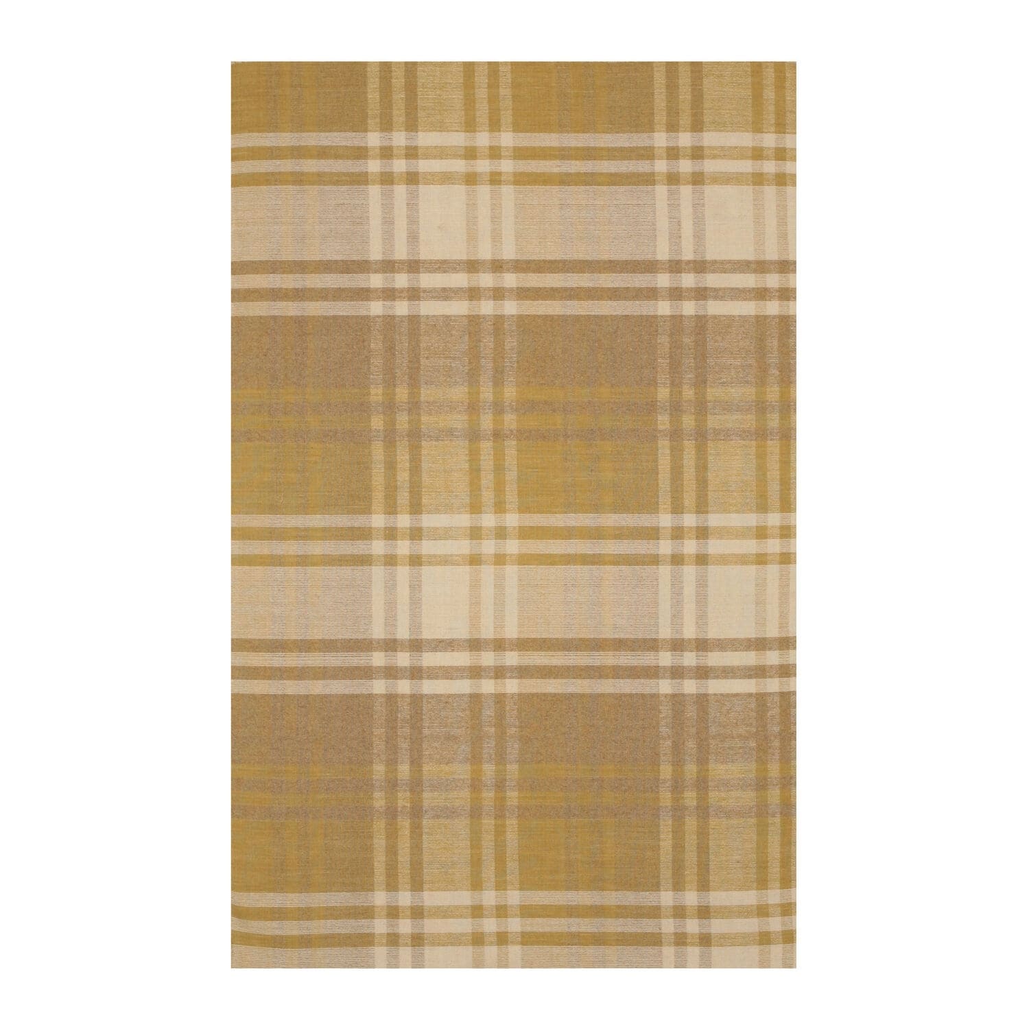 Yellow Handmade Wool Transitional Plaid Rug, 12' x 15', Bright Cozy Statement Piece - L