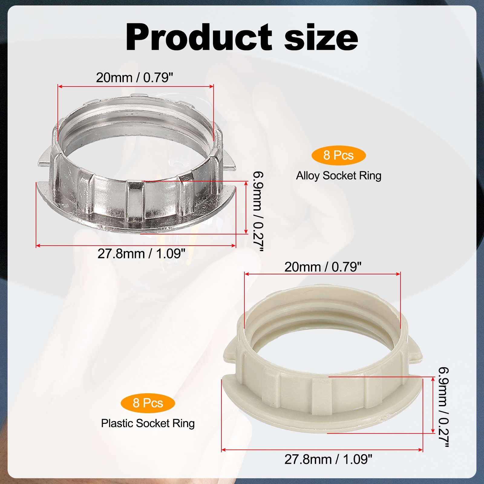 Light Socket Rings, Shade Holder Adapter Alloy Ring Converter Light Holder for Ceramic Lamp Holder Socket - Silver Tone/White