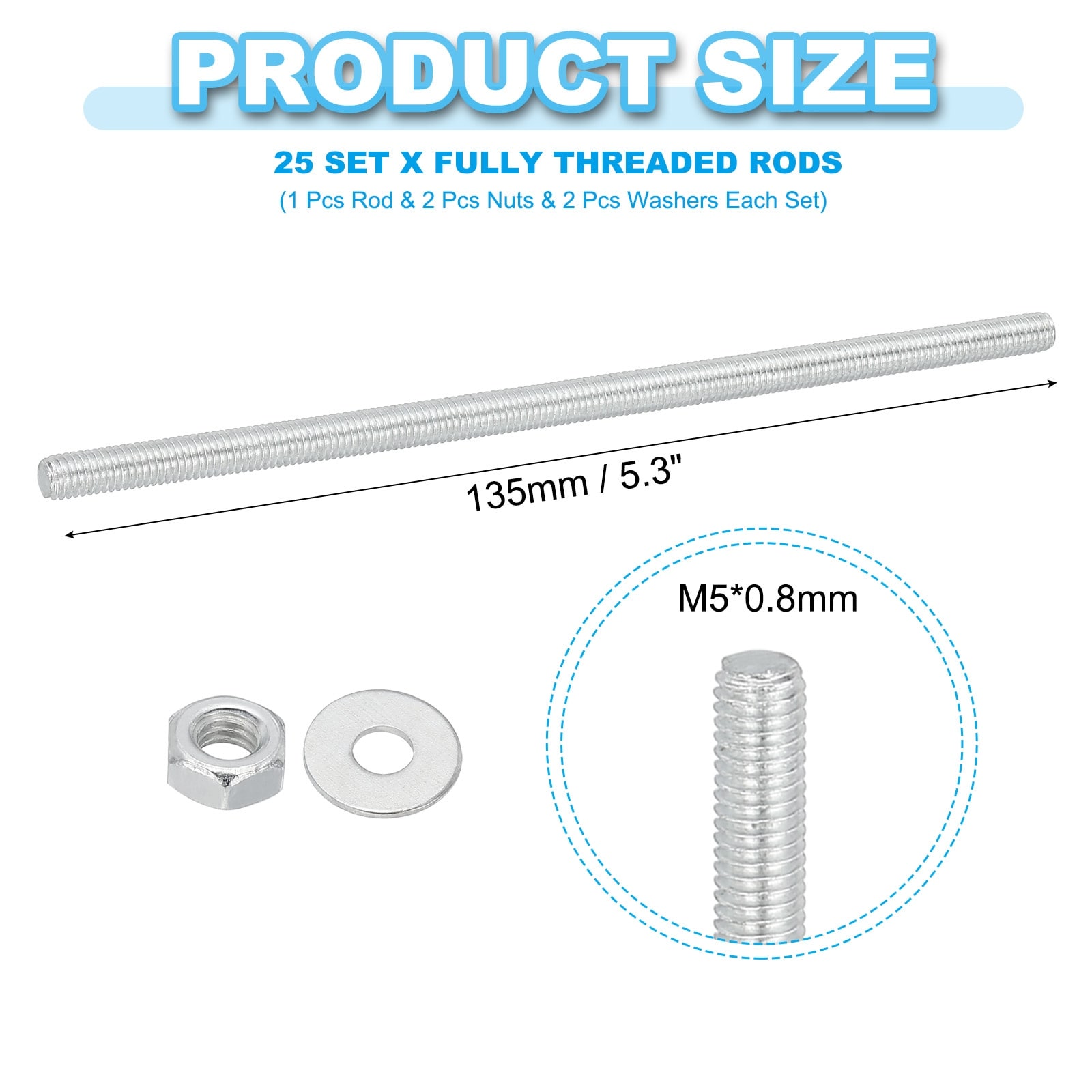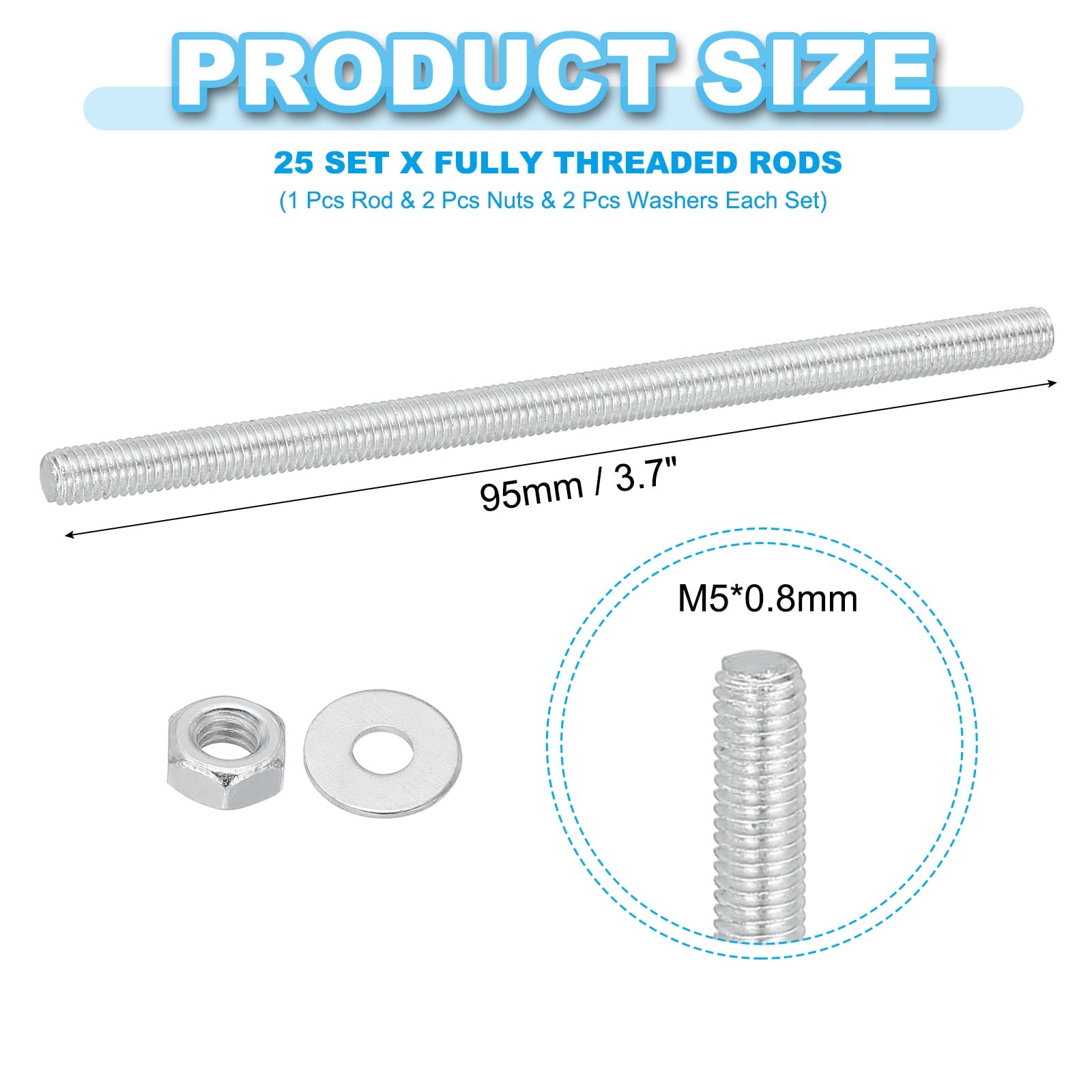 Carbon Steel Fully Threaded Rods, Thread Rod Bar Studs with Nuts and Washers for Furniture Mounting Machinery Manufacturing