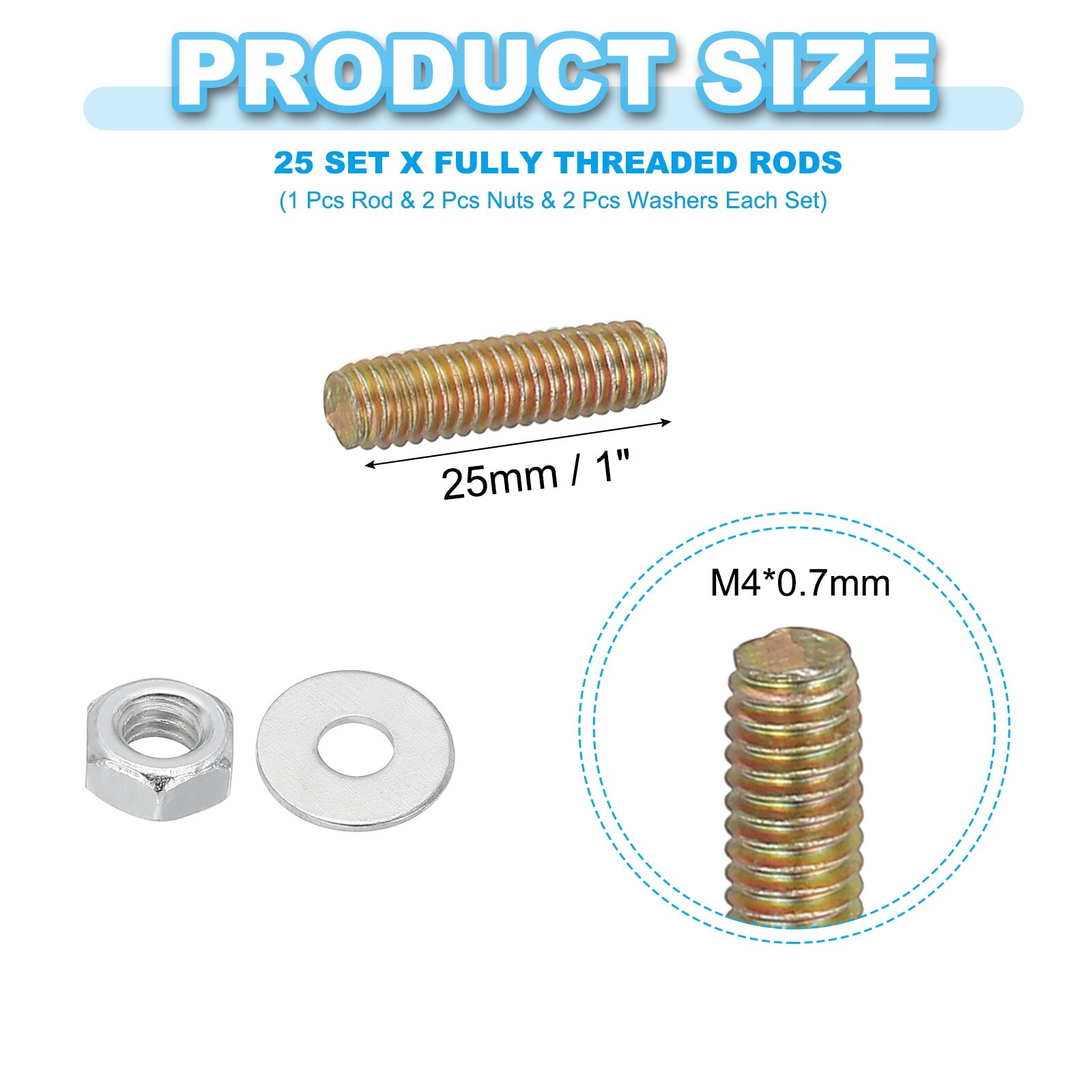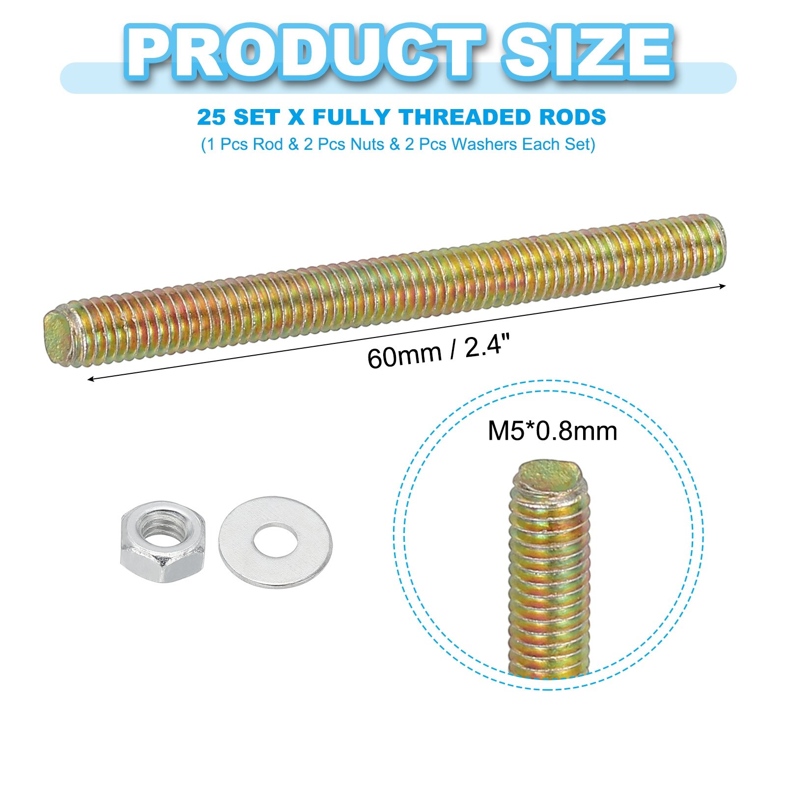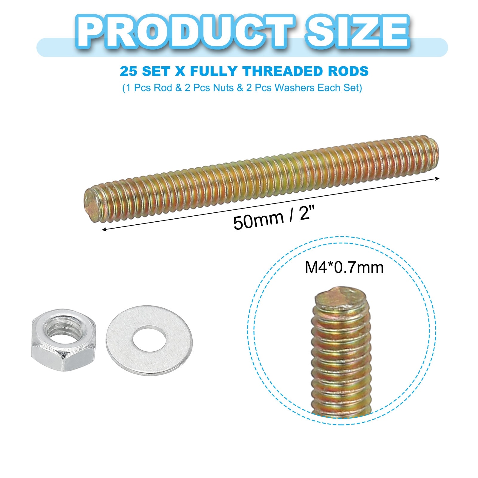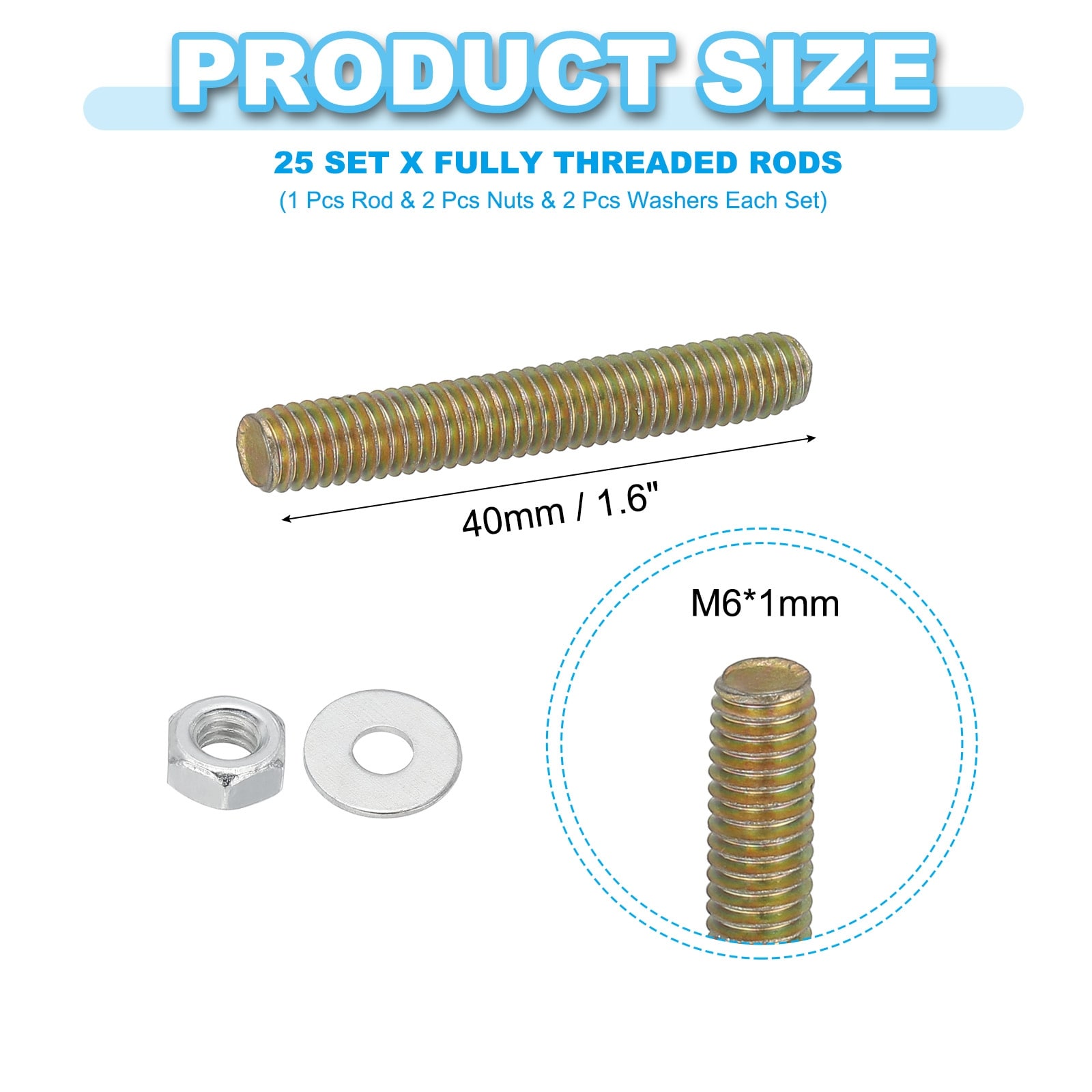 Carbon Steel Fully Threaded Rods, Threads Rod Bar Studs with Nuts and Washers for Furniture Mounting Machinery Manufacturing