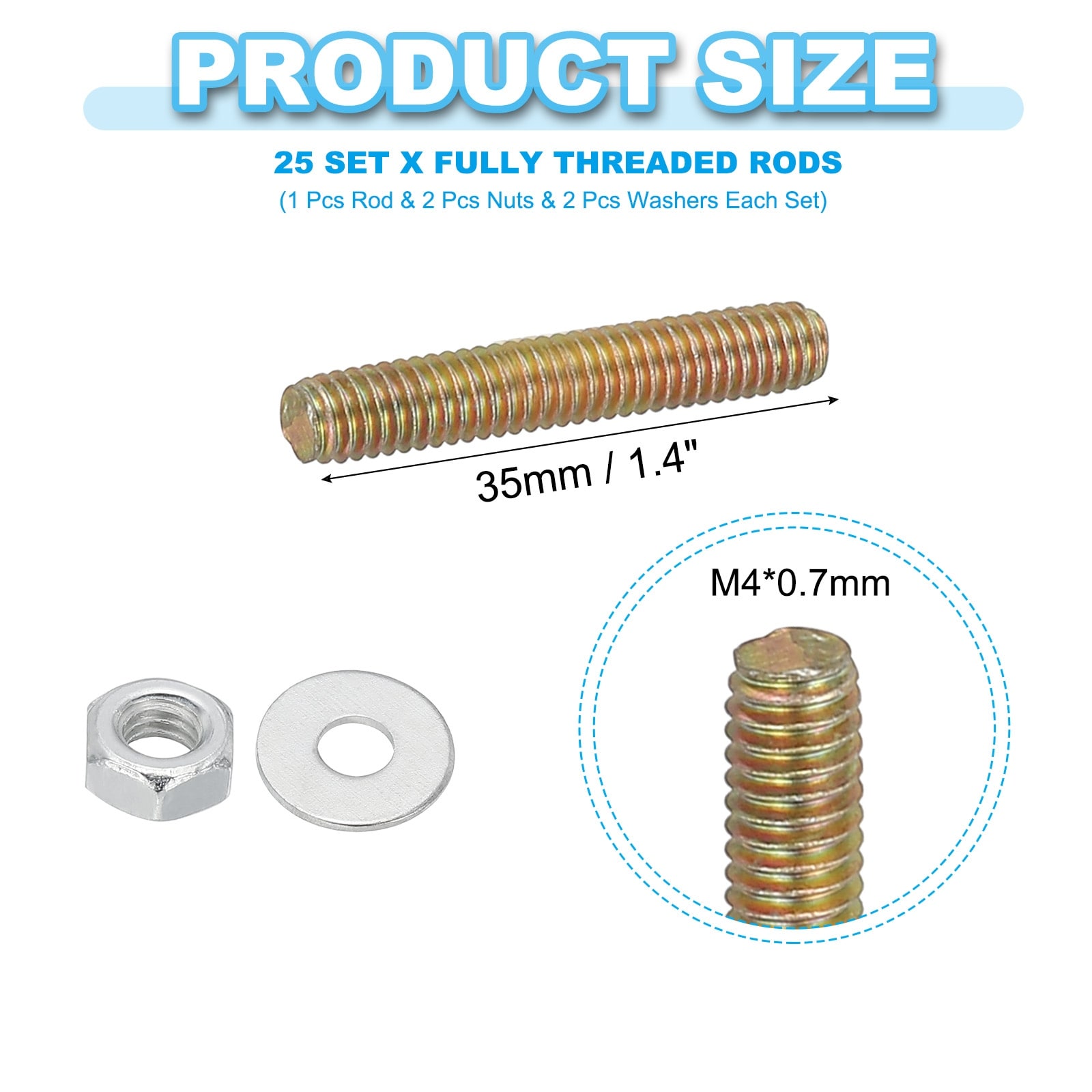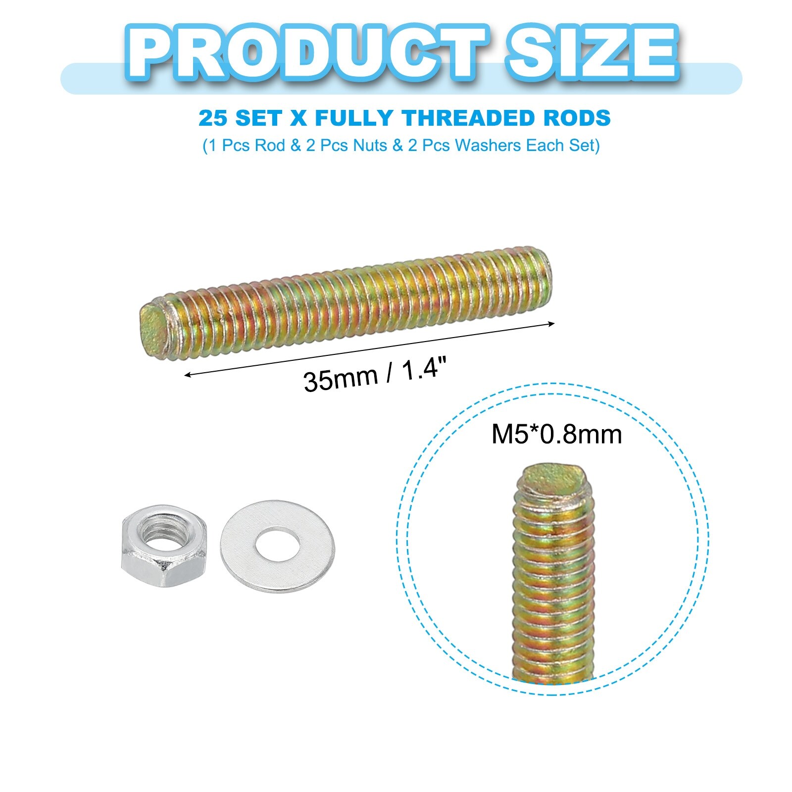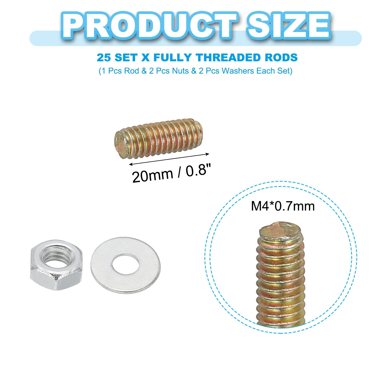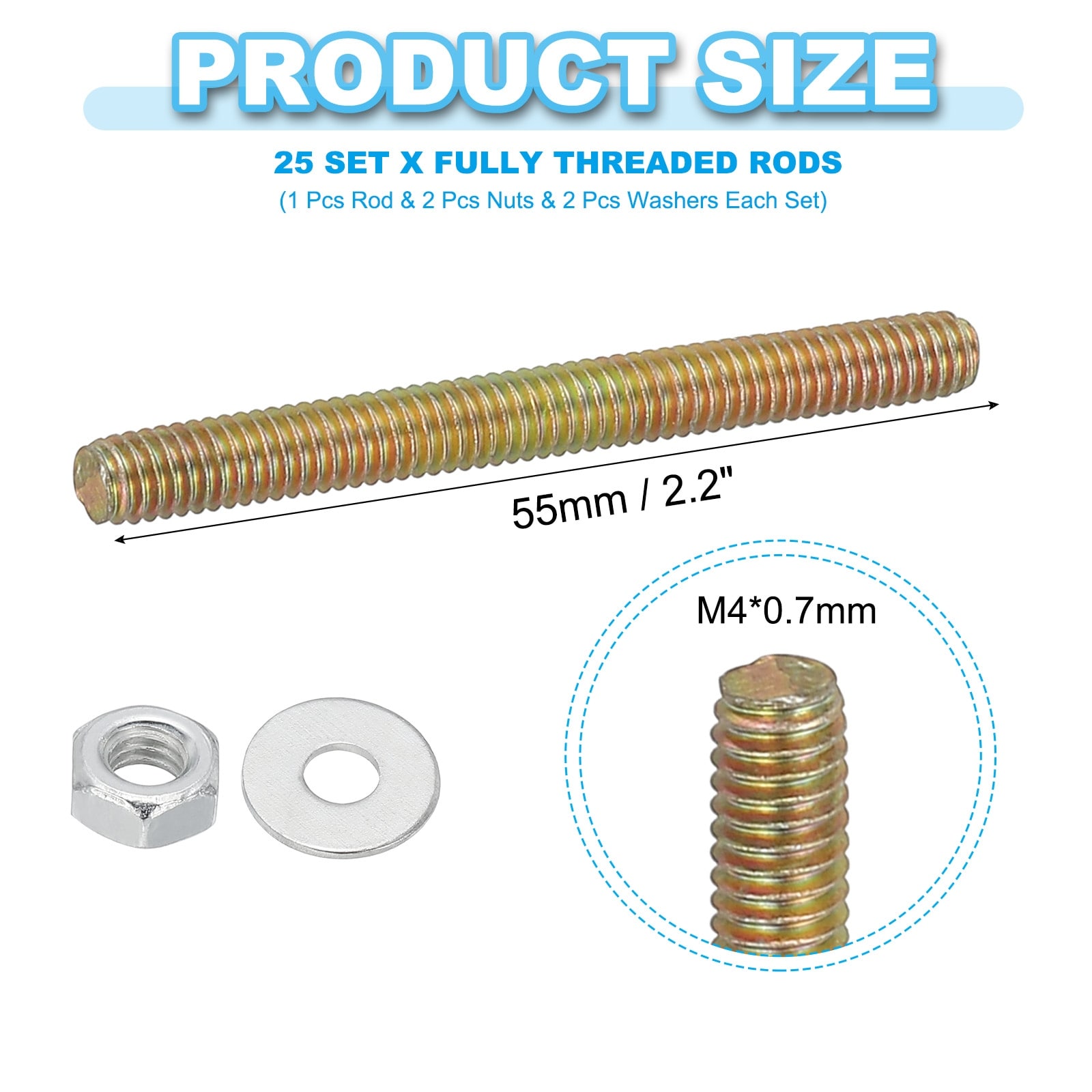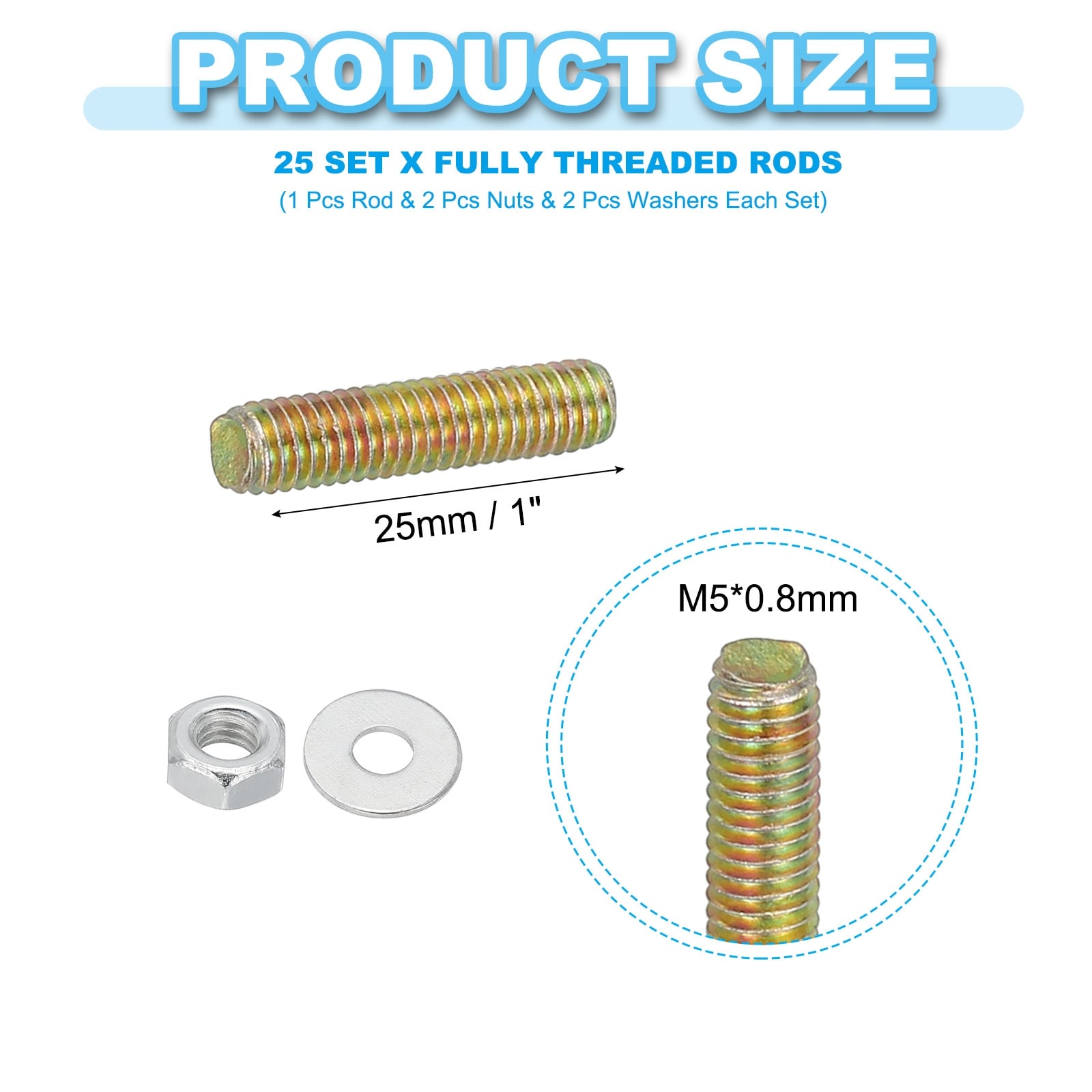 Carbon Steel Fully Threaded Rods, Threads Rod Bar Studs with Nuts and Washers for Furniture Mounting Machinery Manufacturing