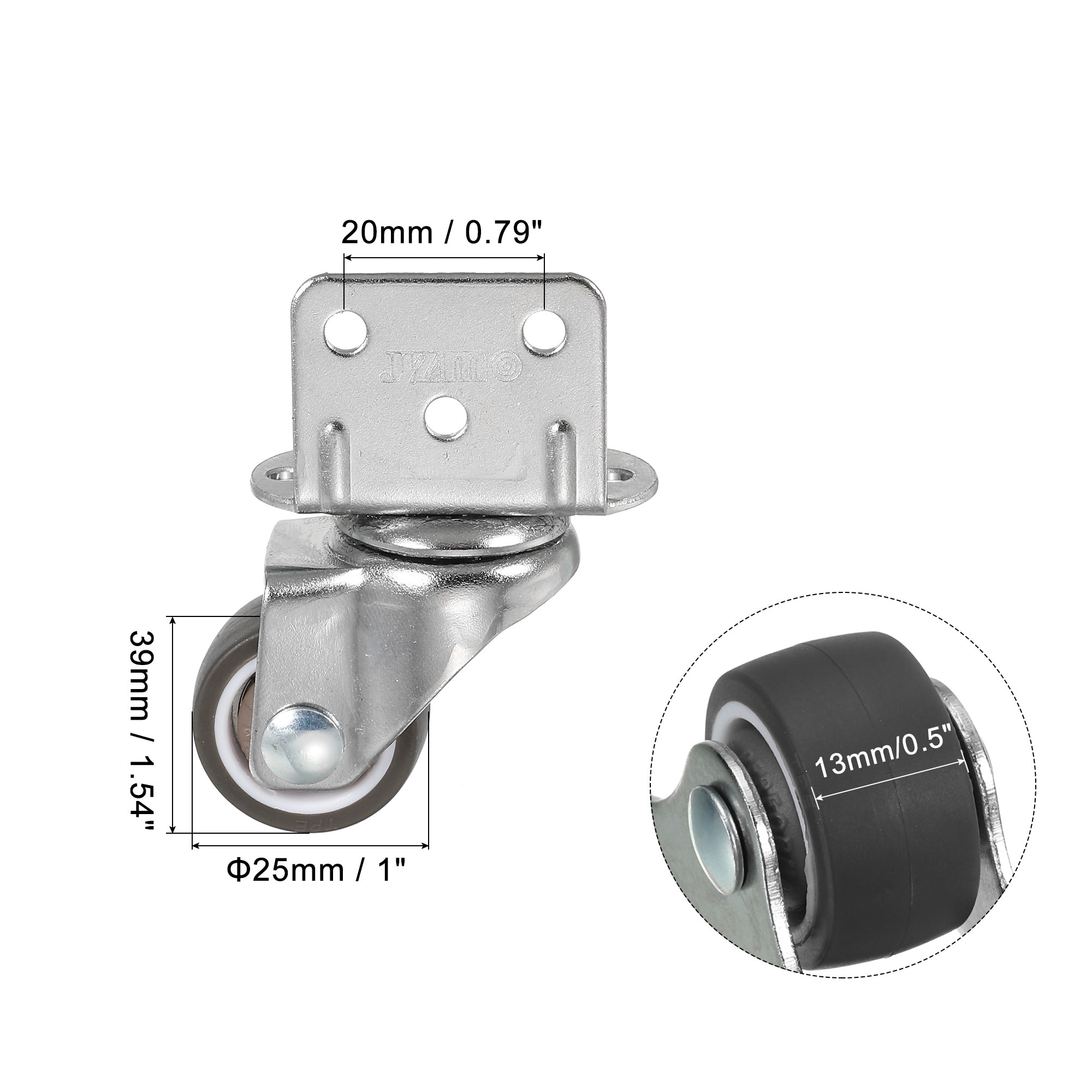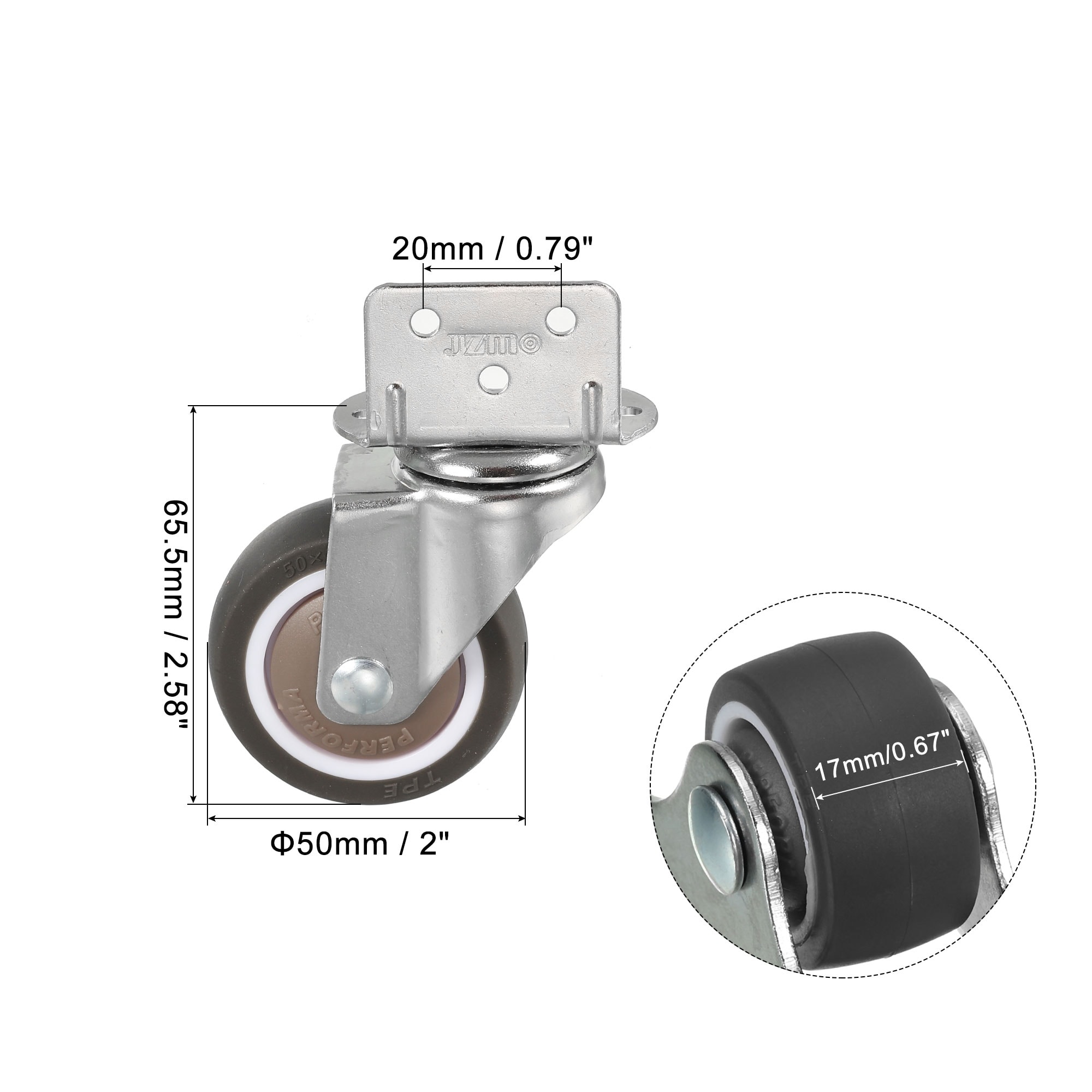 L-shaped Plate Swivel Caster Wheel TPE Side Mount Roller with Bearing Screws for Furniture Flower Stand - Brown