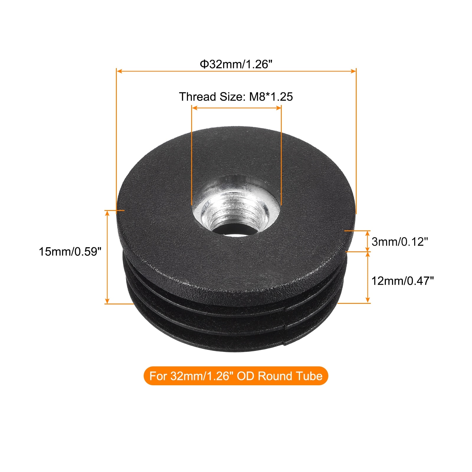 Inserts for Tubes with Thread, for OD Tube, Plastic Plug Caster Insert Chair End Cap Furniture Plug - 1.26"