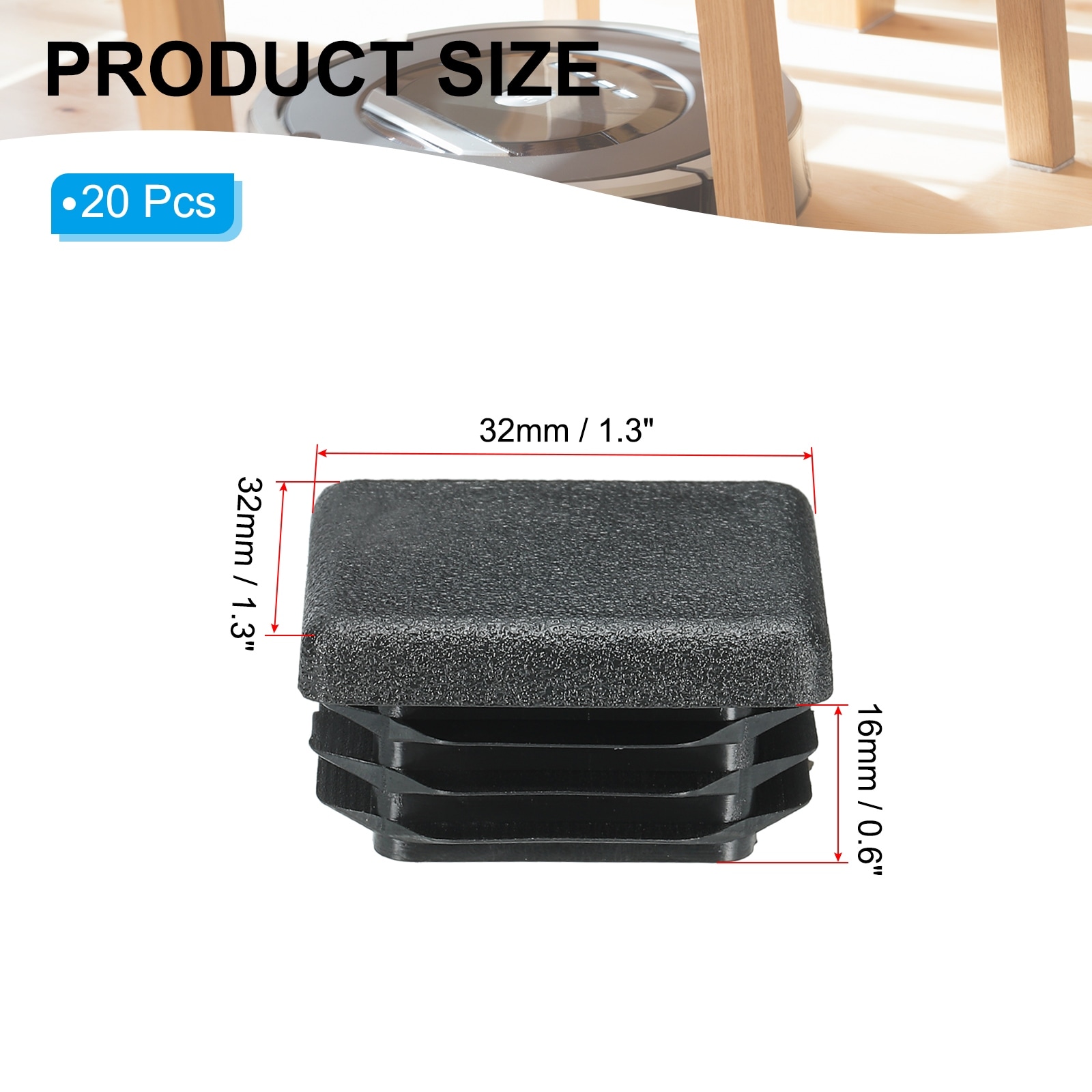 Square Plastic Hole Plugs Tubing Insert End Cap for Square Metal Tubing Furniture Chair Leg Fence Post Pipe