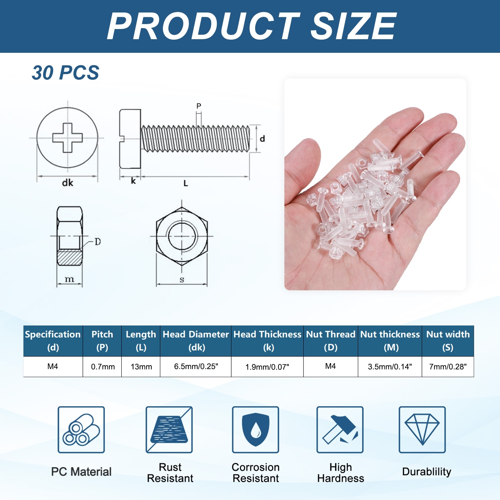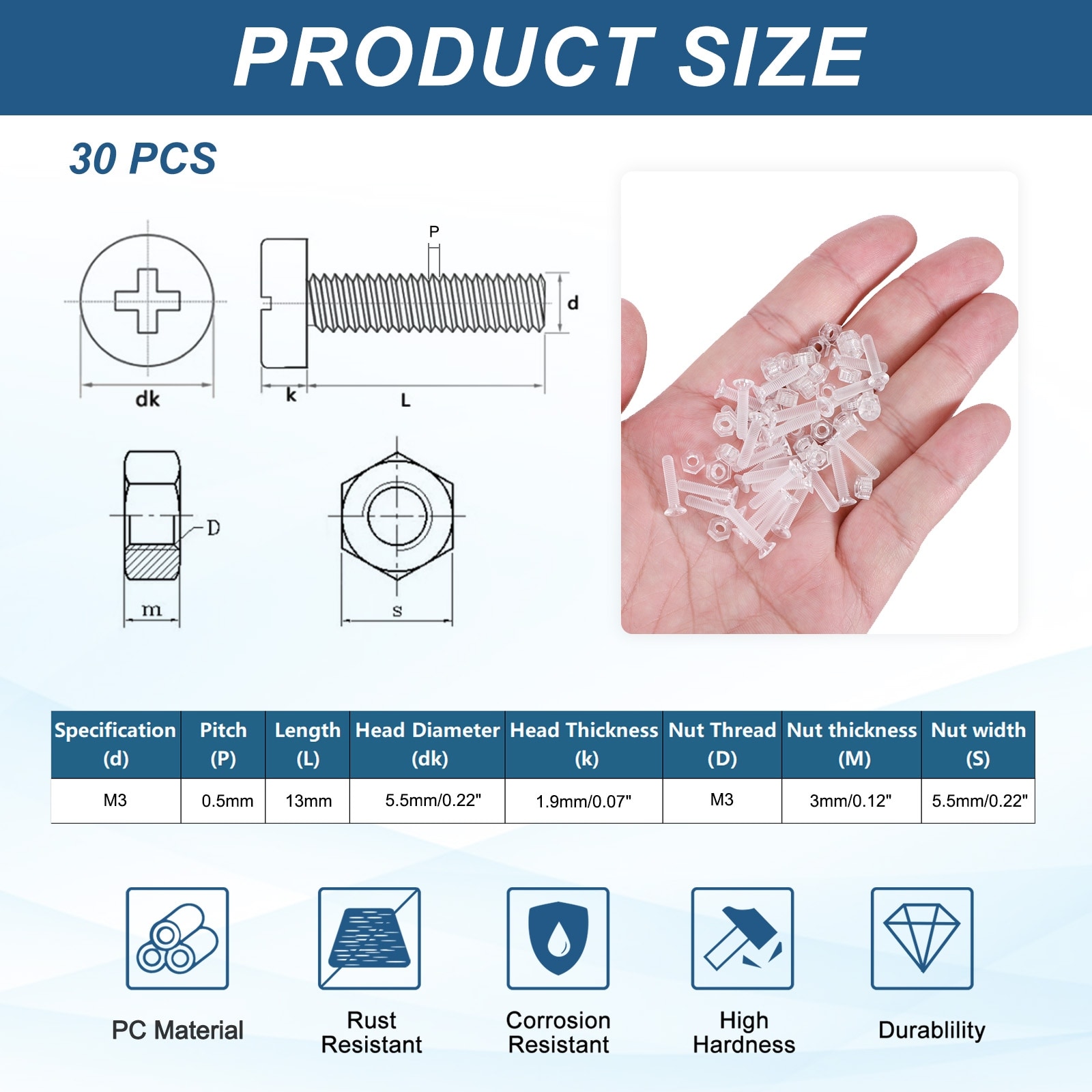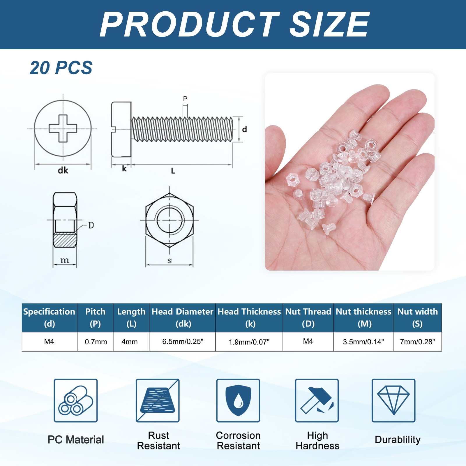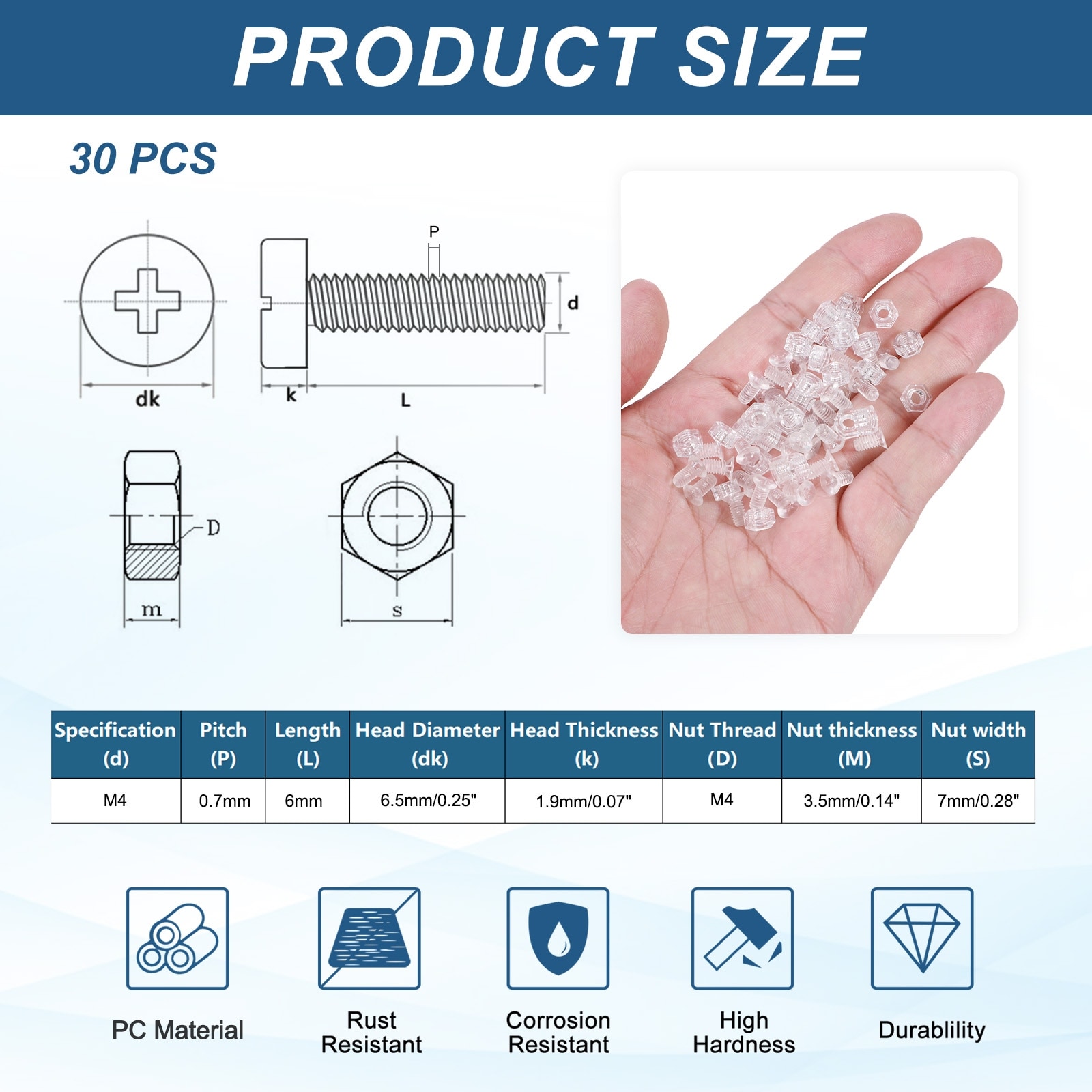 PC Clear Cross-recessed Countersunk Screws and Hex Nuts Kit, Plastic Machine Screws Round Head Acrylic Bolts