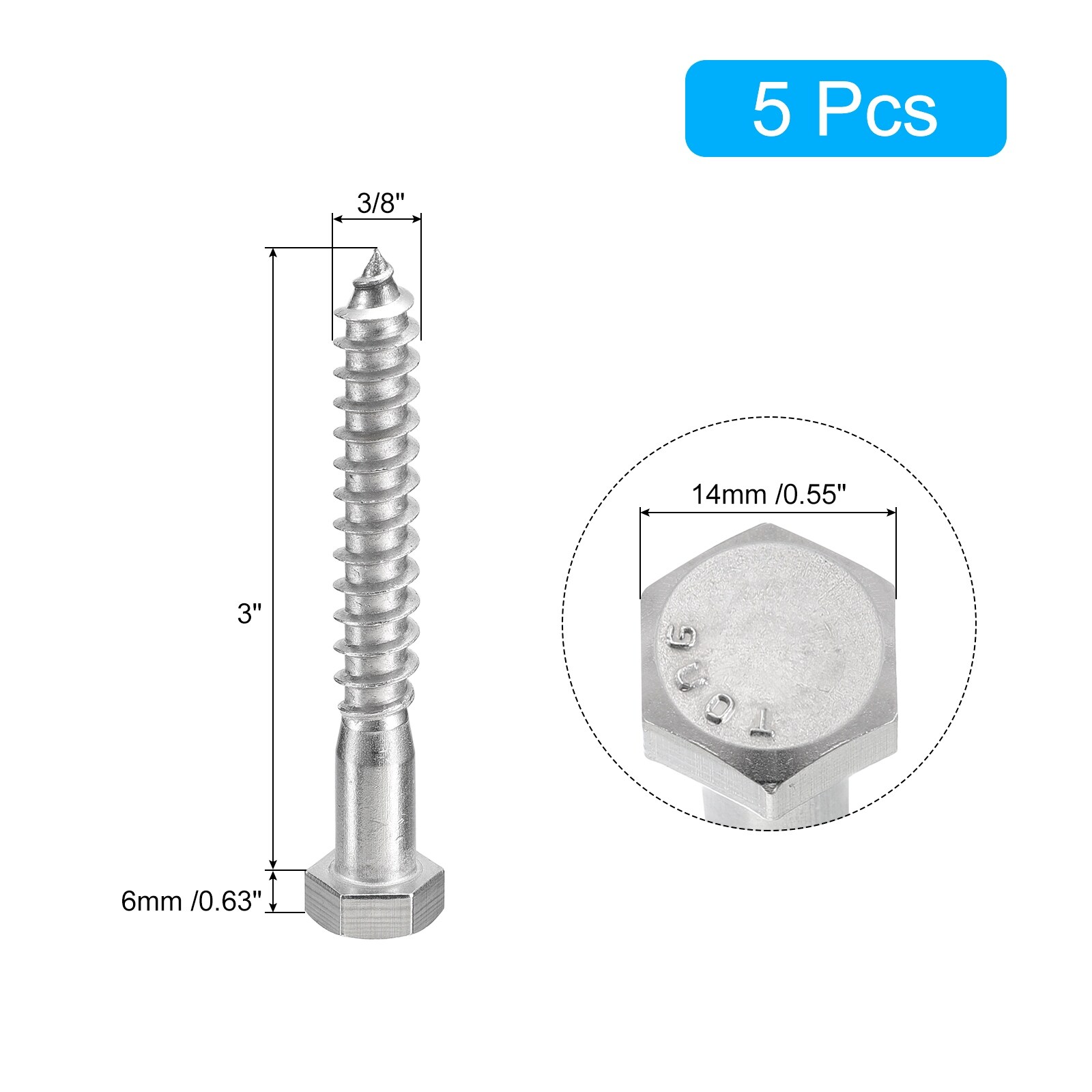 Hex Head Lag Screws Bolts, 304 Stainless Steel Thread Wood Screws