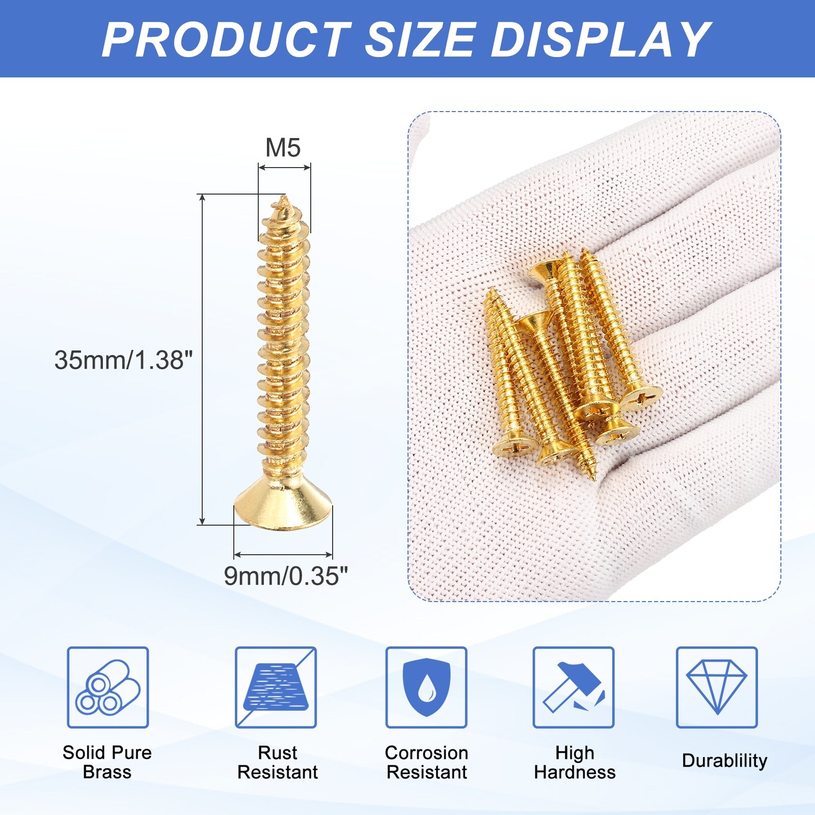 Solid Brass Wood Screws Flat Head Self-Tapping Wood Screw - Gold