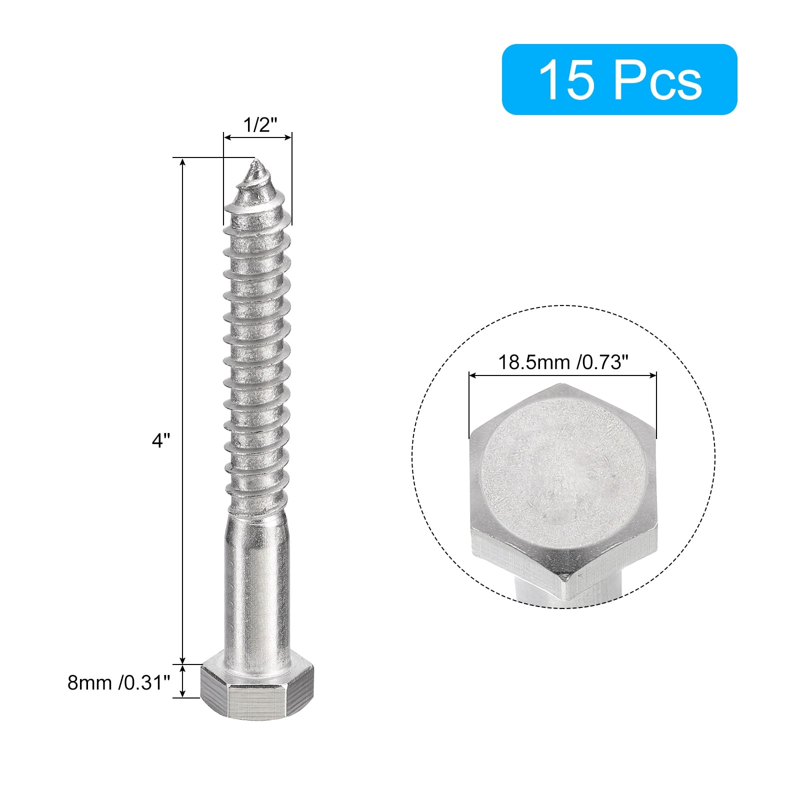 Hex Head Lag Screws Bolts, 304 Stainless Steel Thread Wood Screws