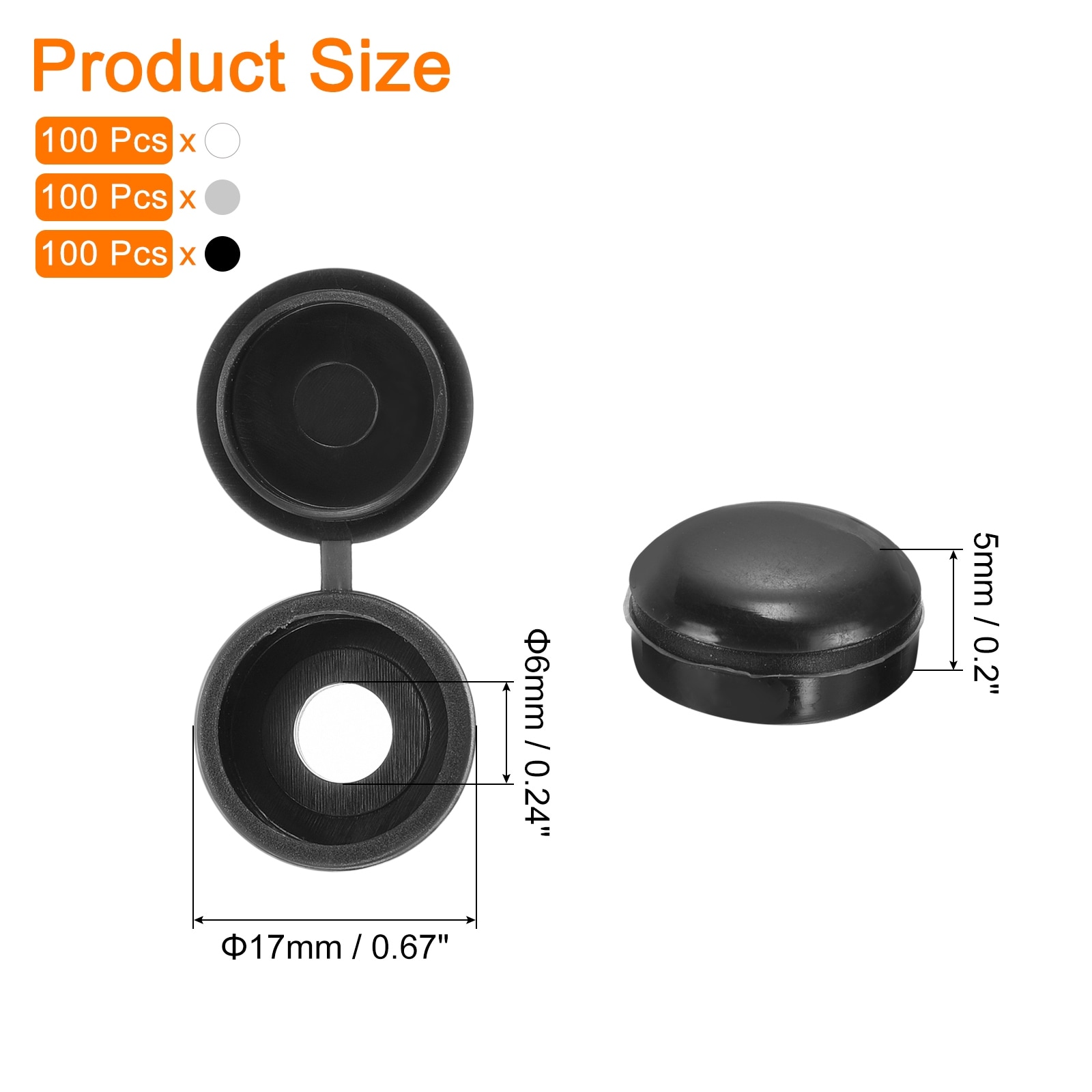 Screw Cover Caps, Plastic Hinged Screw Covers, Snap Washer Covers Screw Caps for Furniture and Wall - Black/White/Grey