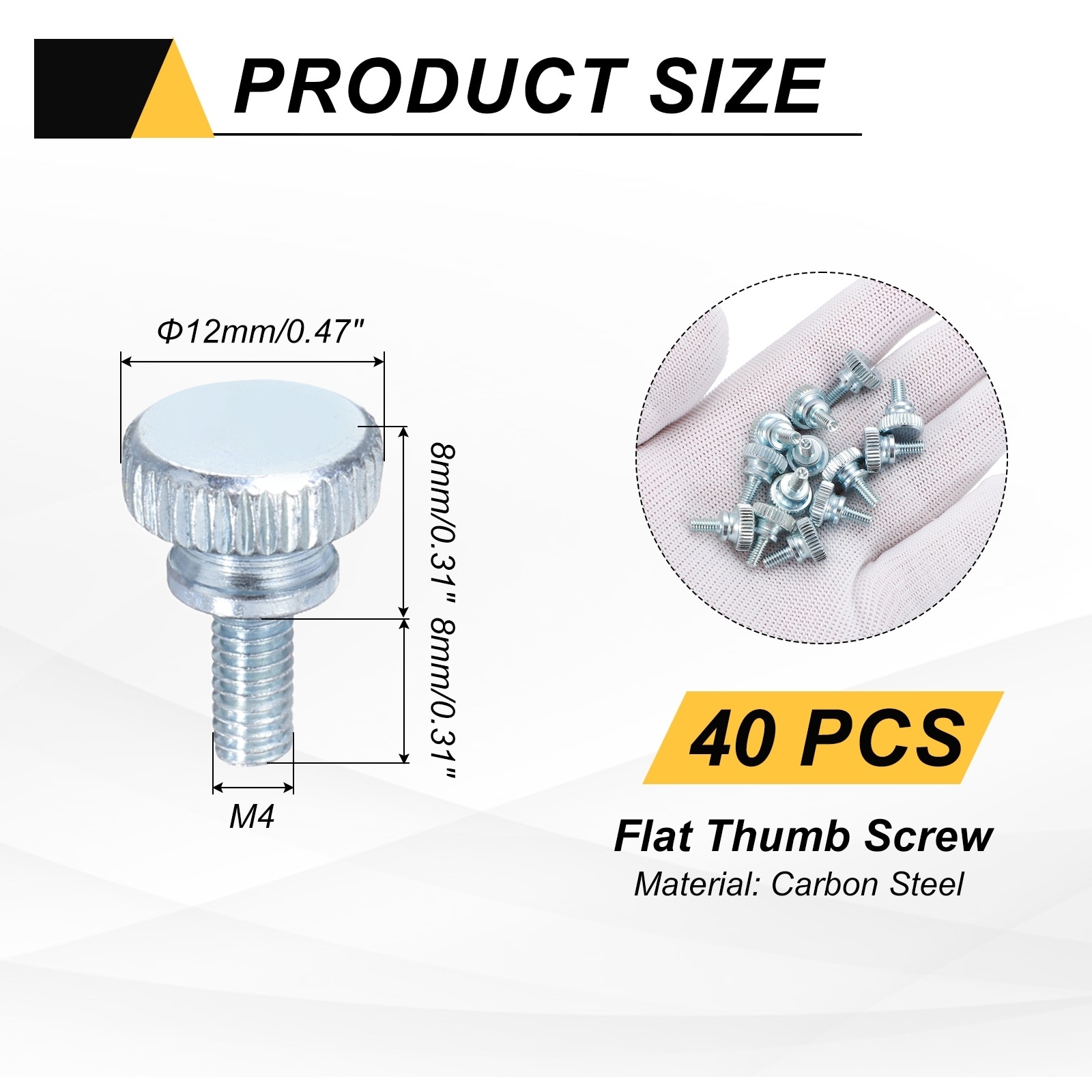Knurled Thumb Screws, Carbon Steel Zinc Plated Flat Knurled Head Fully Threaded Screw Bolts Fasteners for Home, Machine - Silver