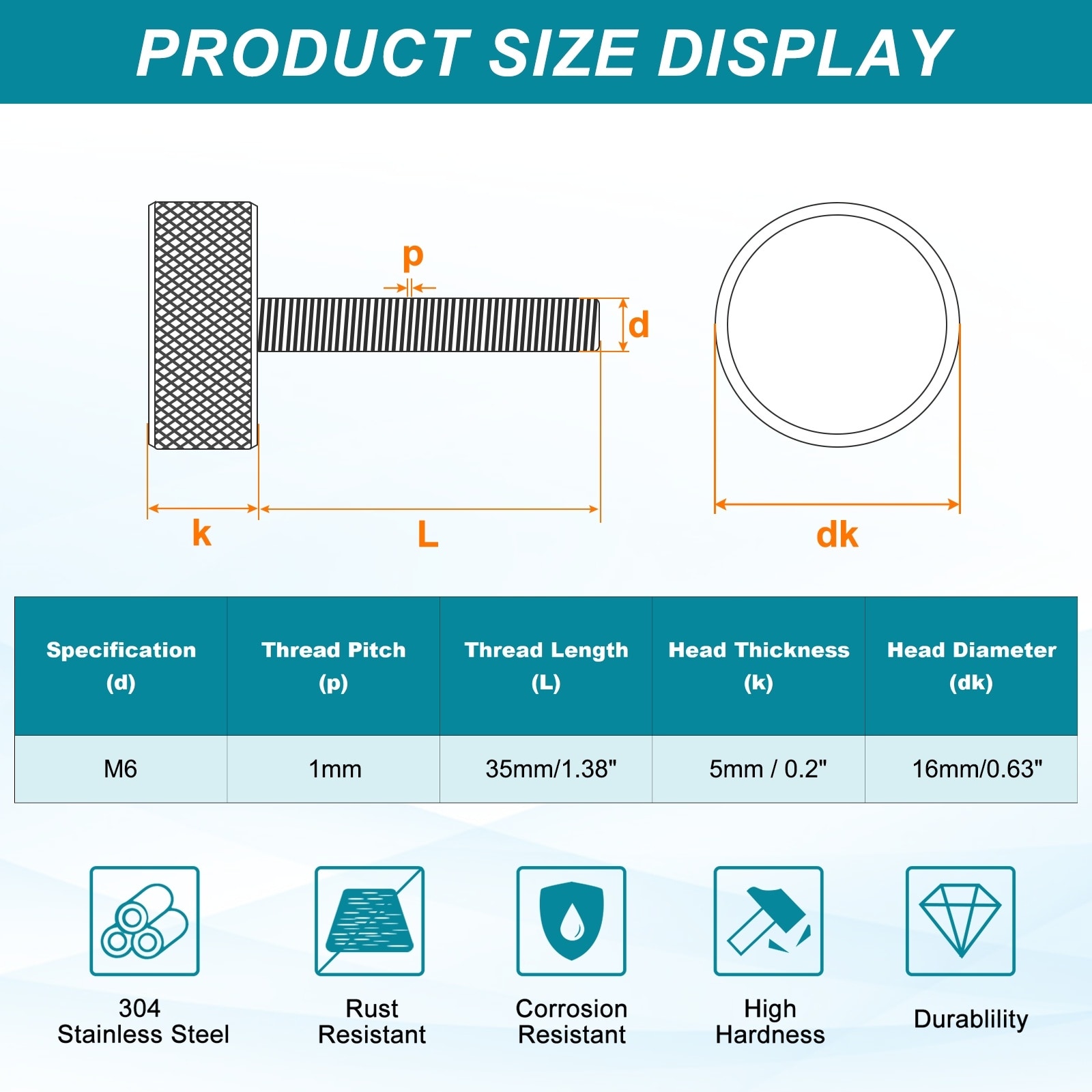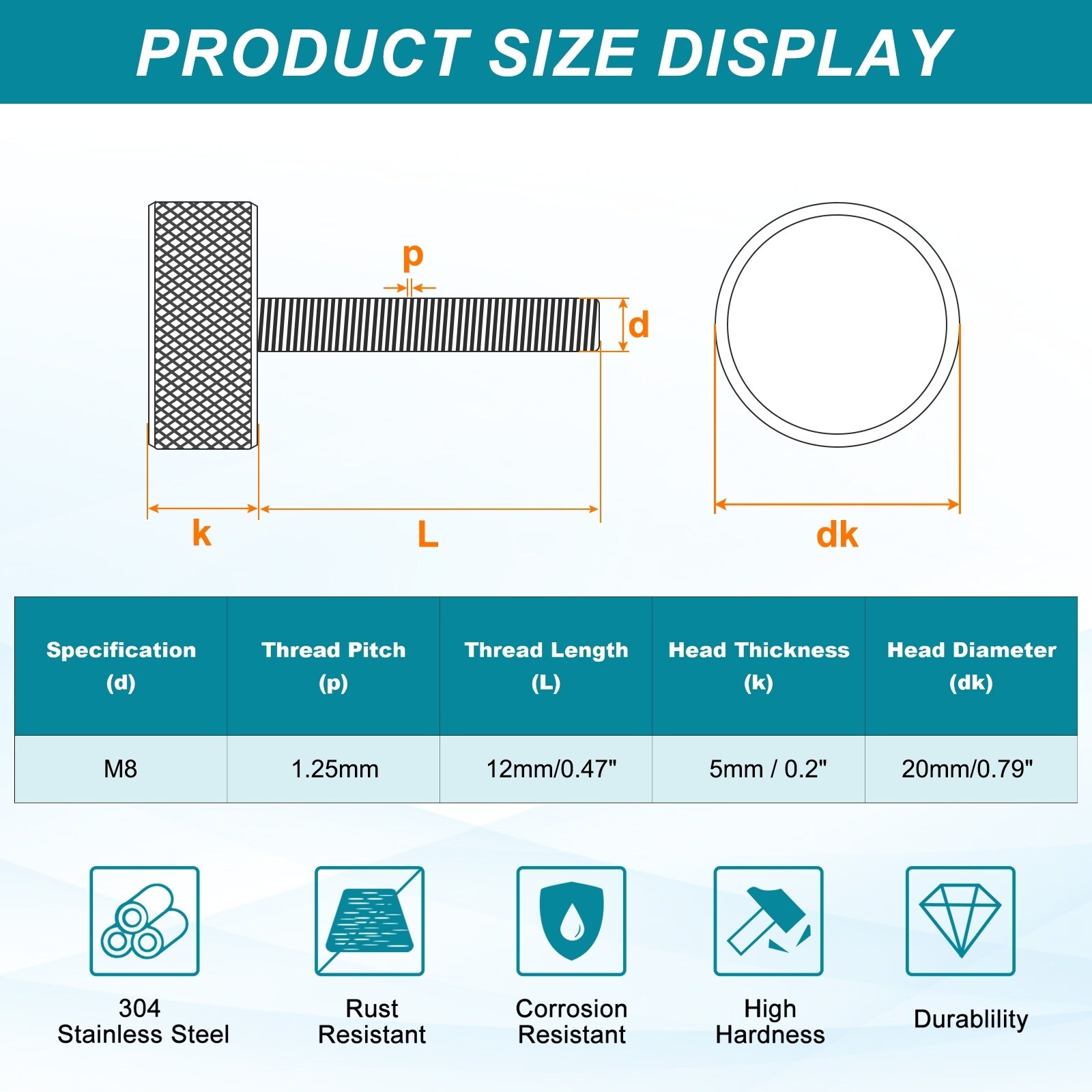 Knurled Thumb Screws, 304 Stainless Steel Flat Head Thumb Screws Metric Diamond Knurled Head Bolts Grip Knobs - Silver