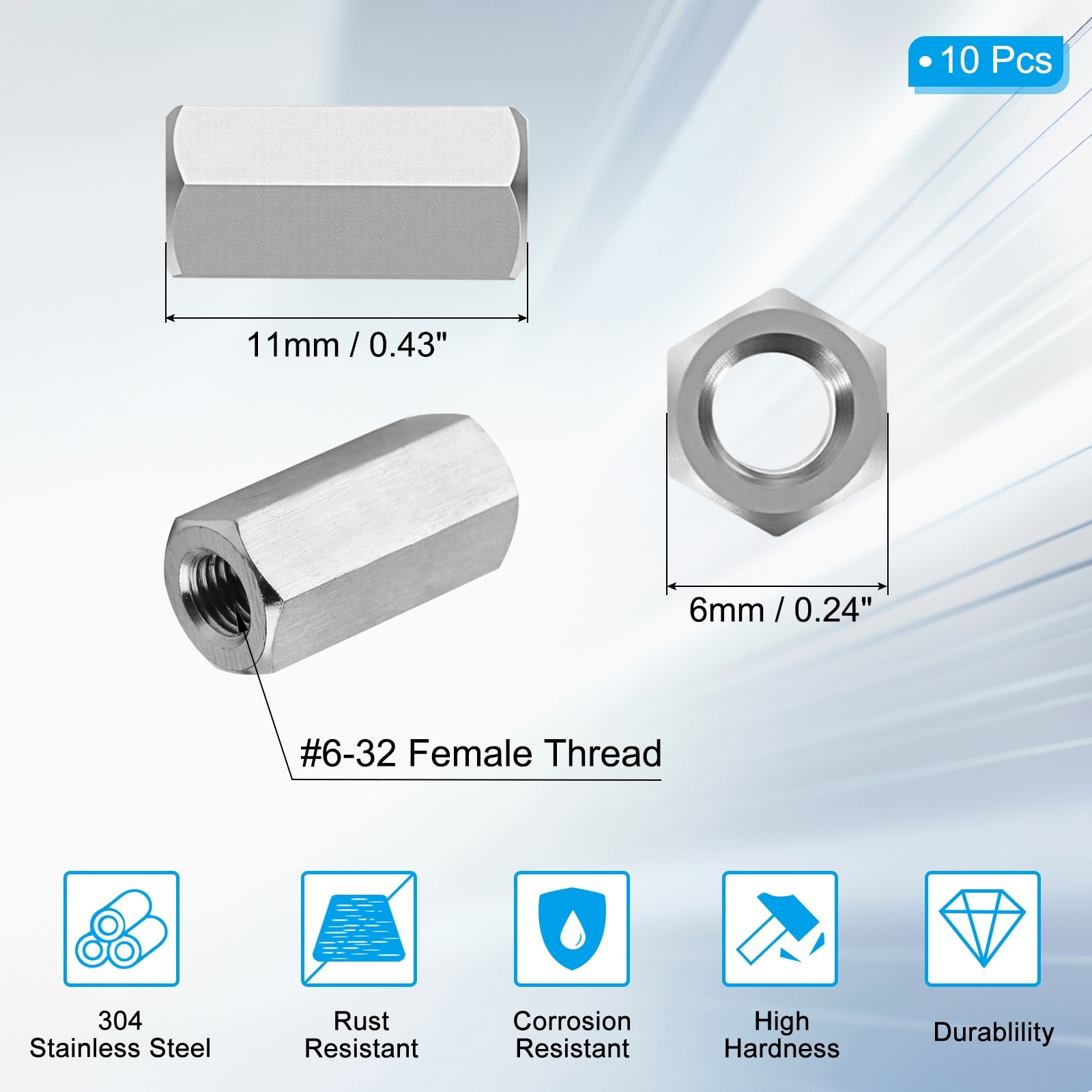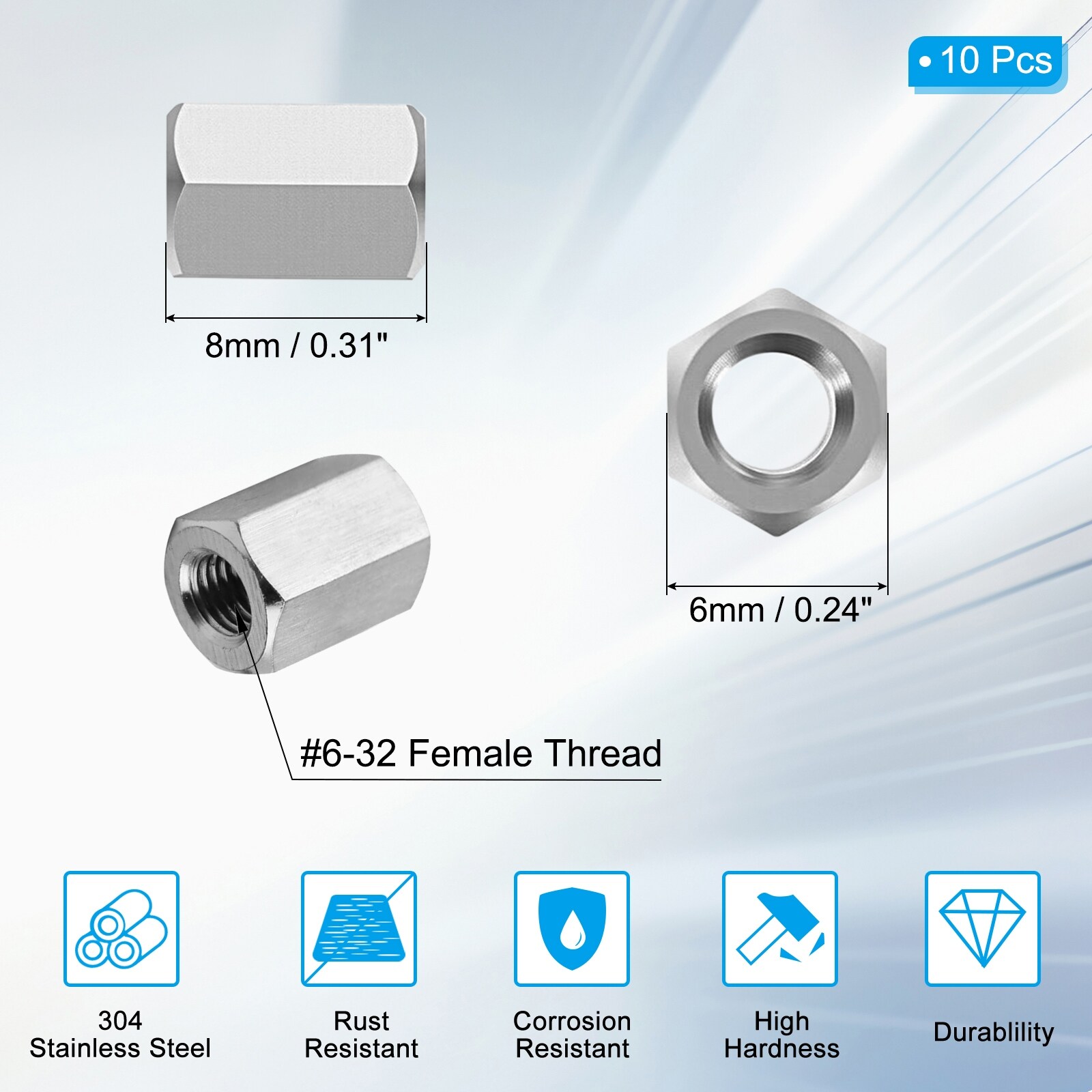 304 Stainless Steel Hex Coupling Nuts, Rod Coupling Nut Studding Connector Fasteners