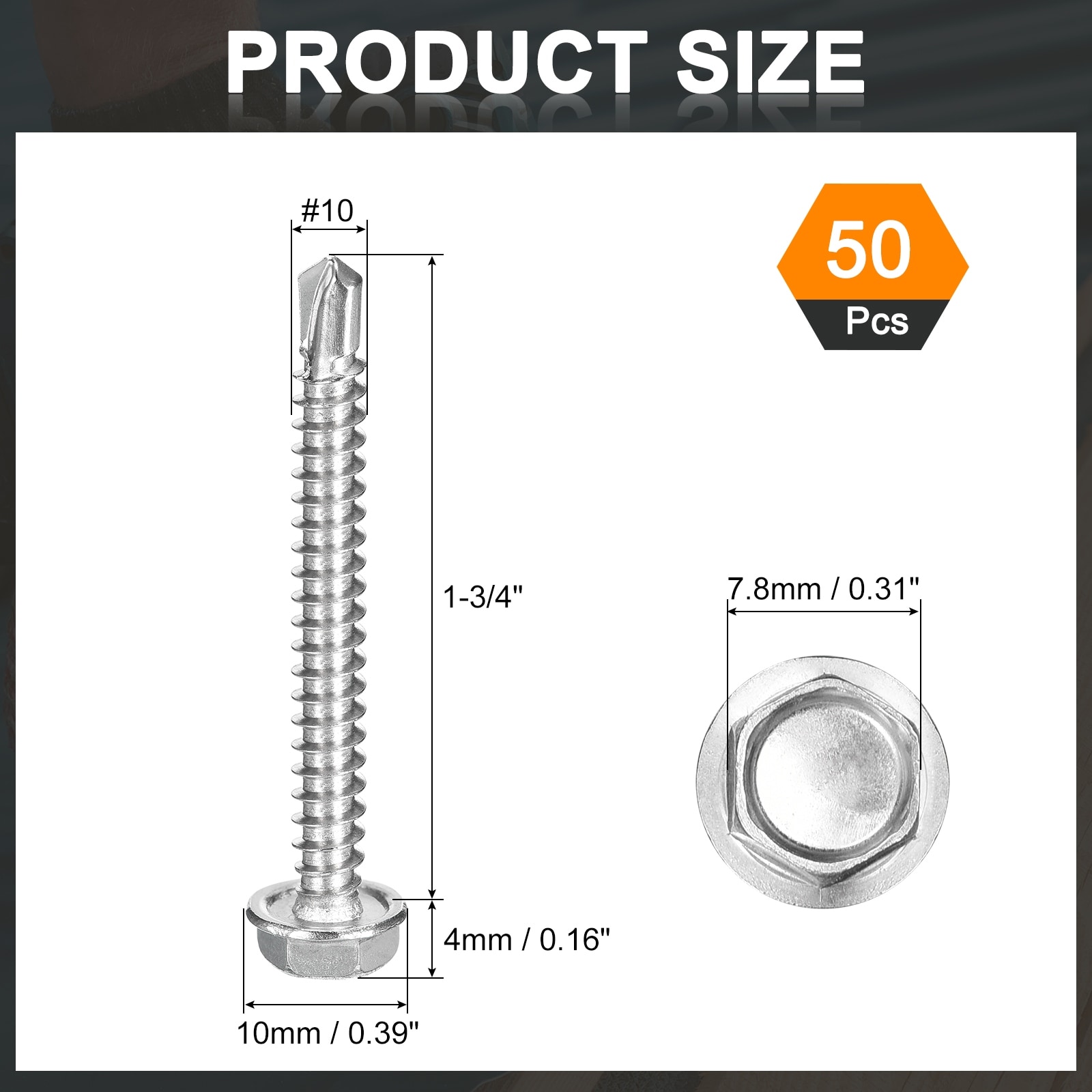 Self Drilling Screws, Stainless Steel Self Tapping Screws for Metal, Hex Washer Head Sheet Metal