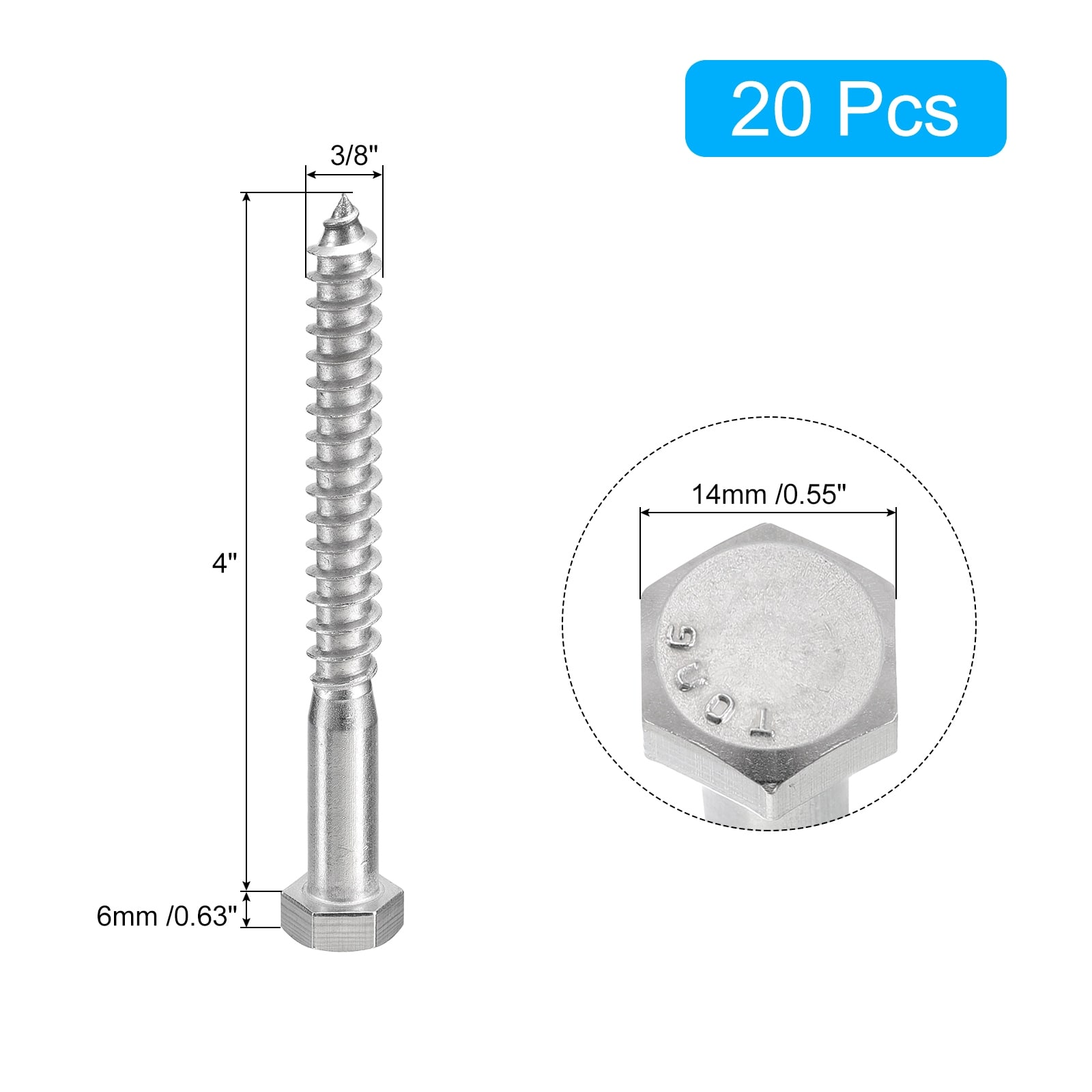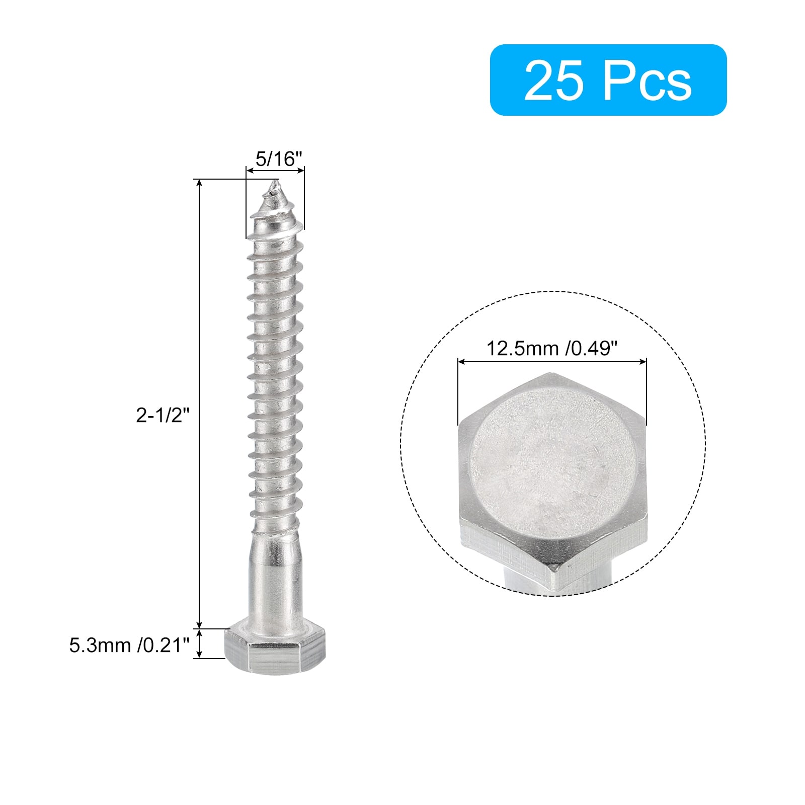 Hex Head Lag Screws Bolts, 304 Stainless Steel Thread Wood Screws
