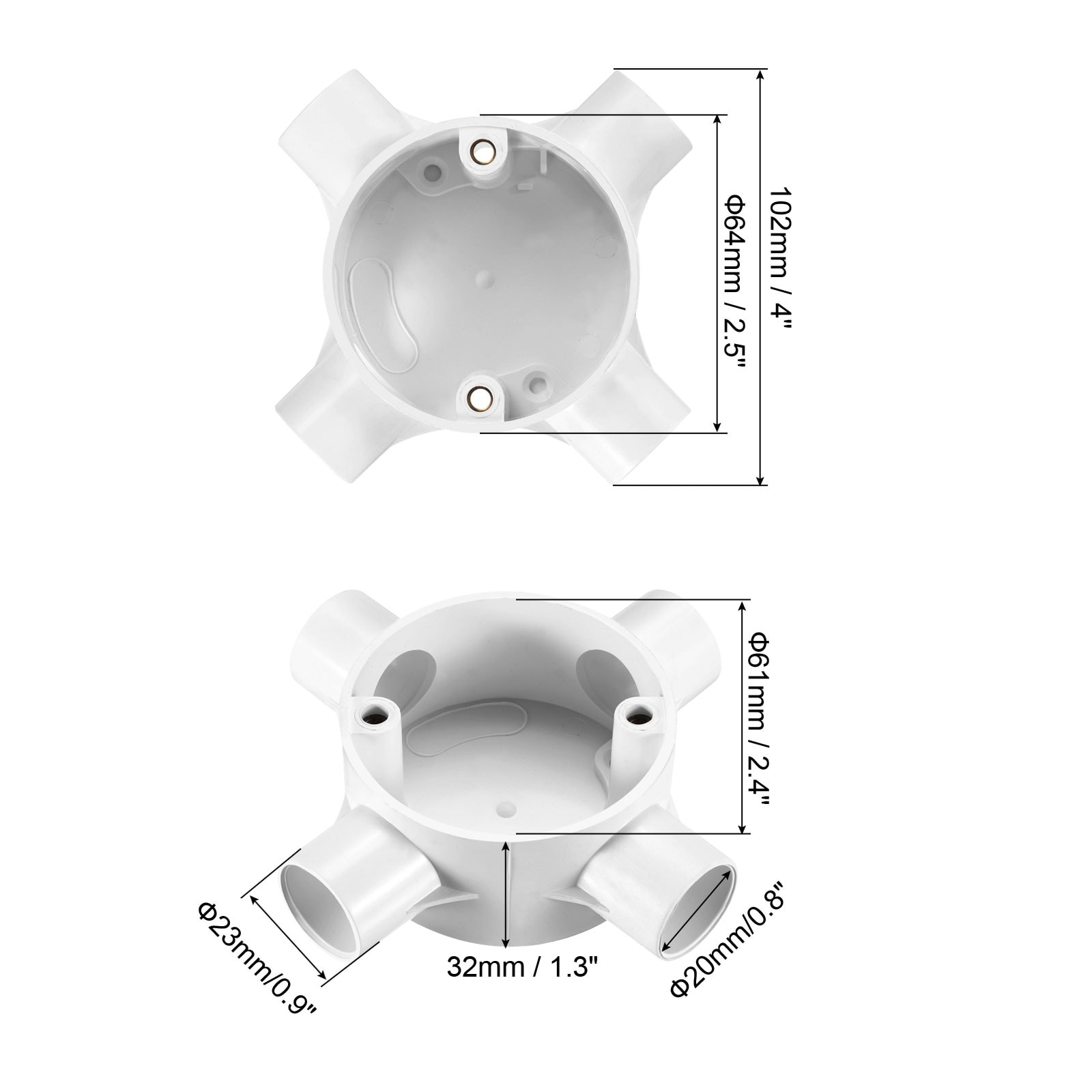 Conduit Box Junction Box 4 Way with Cover, M4 Screws for Hose - White