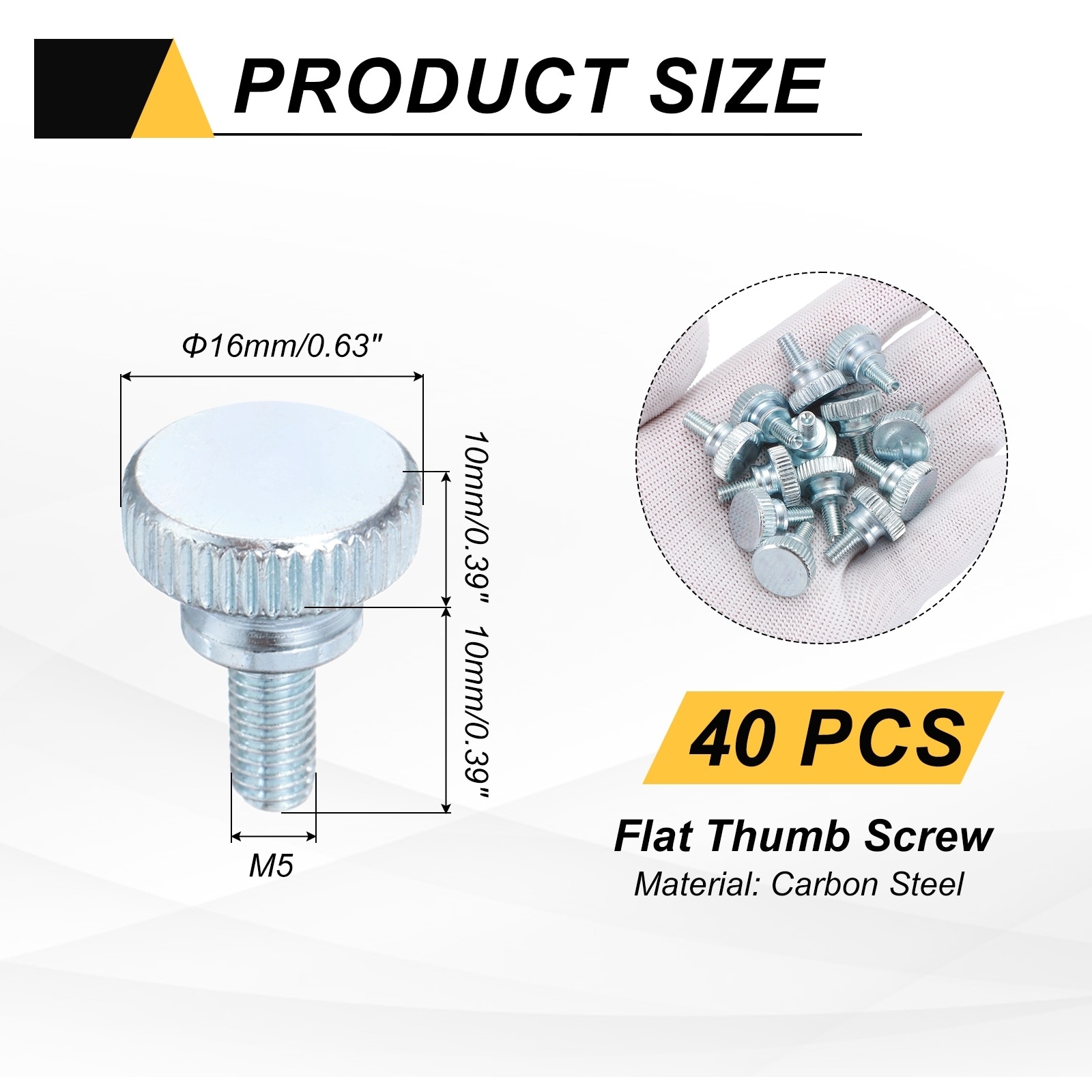 Knurled Thumb Screws, Carbon Steel Zinc Plated Flat Knurled Head Fully Threaded Screw Bolts Fasteners for Home, Machine - Silver