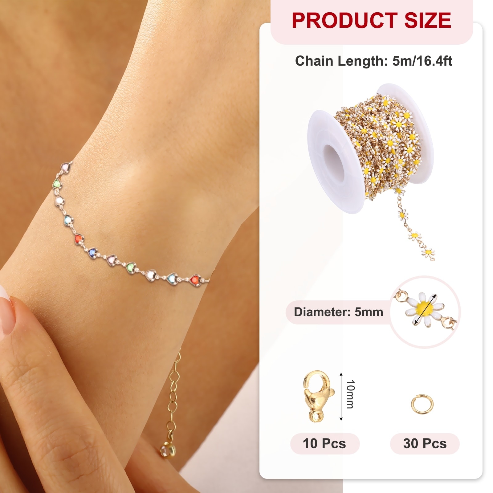 16.4Ft Colorful Flowers Chain Roll, Jewelry Making Chain Links Bulk, Multicolor - 5m/16.4ft