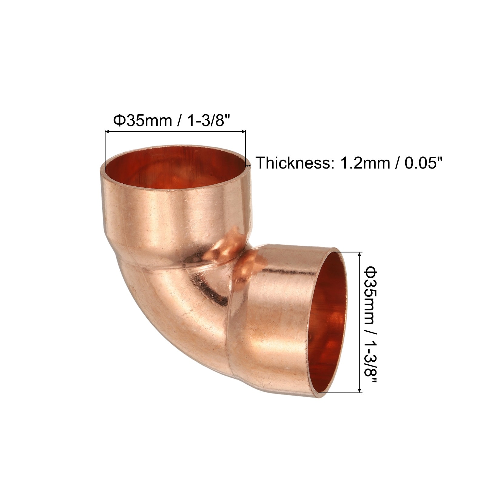4Pcs 1/4"ID 0.8mm Thick Elbow Copper Fitting 90 Degree Solder Copper Tube - Copper Tone