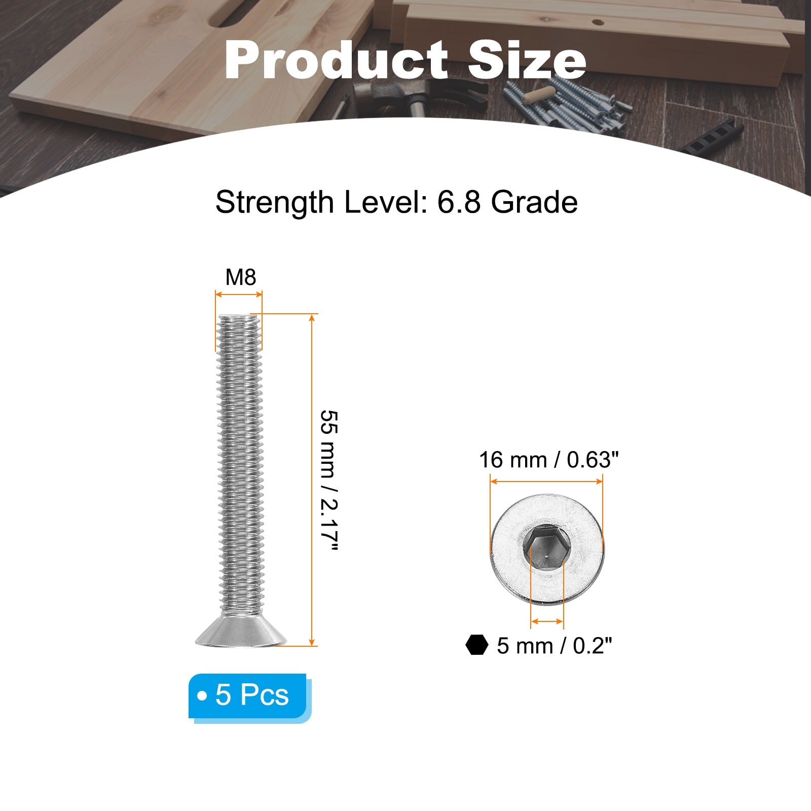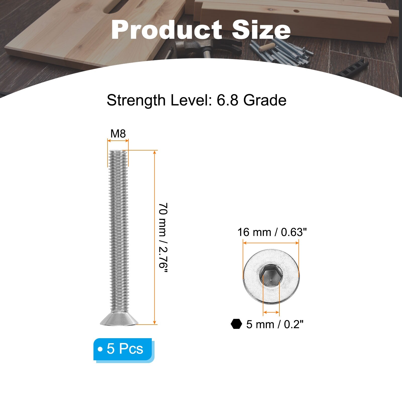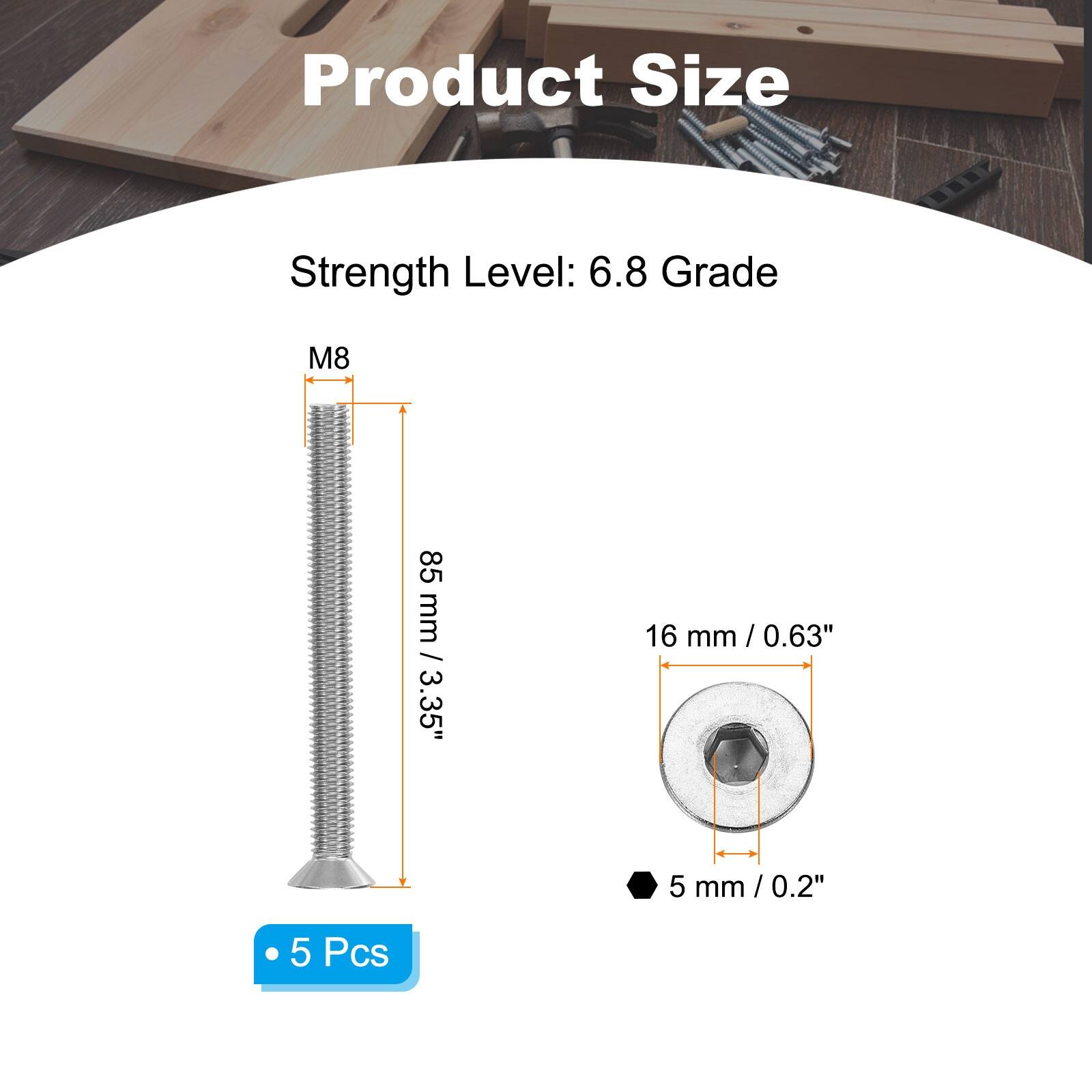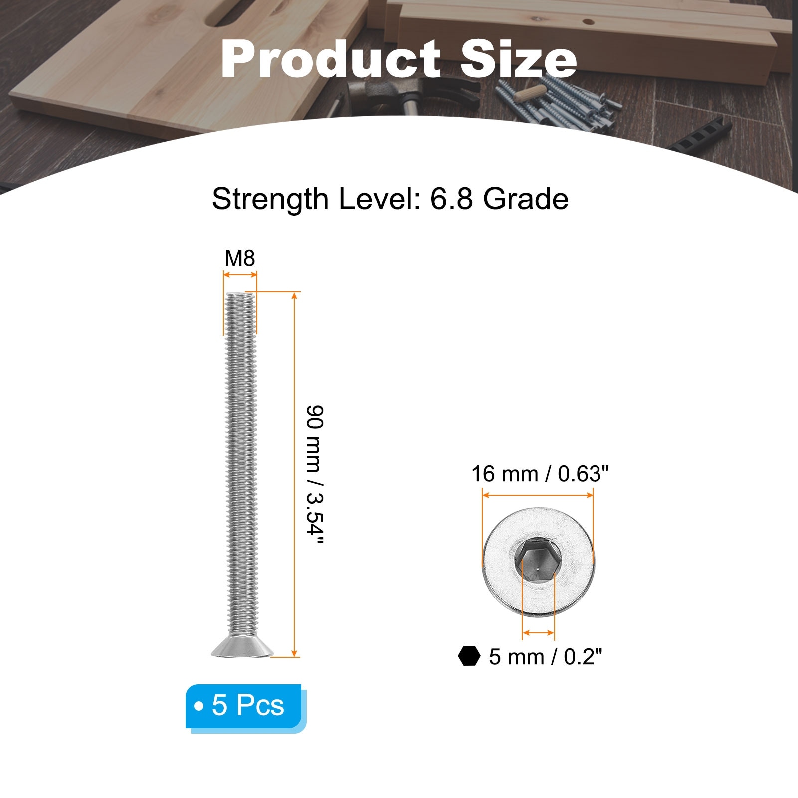 Flat Head Socket Cap Screws, 304 Stainless Steel Machine Screws Flat Countersunk Bolt Hex Socket Drive Fasteners Grade - Silver